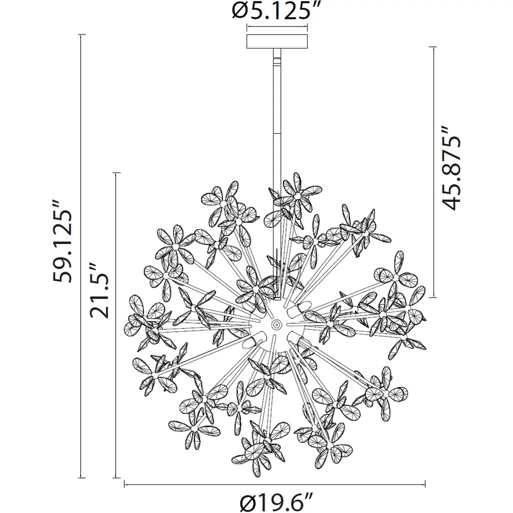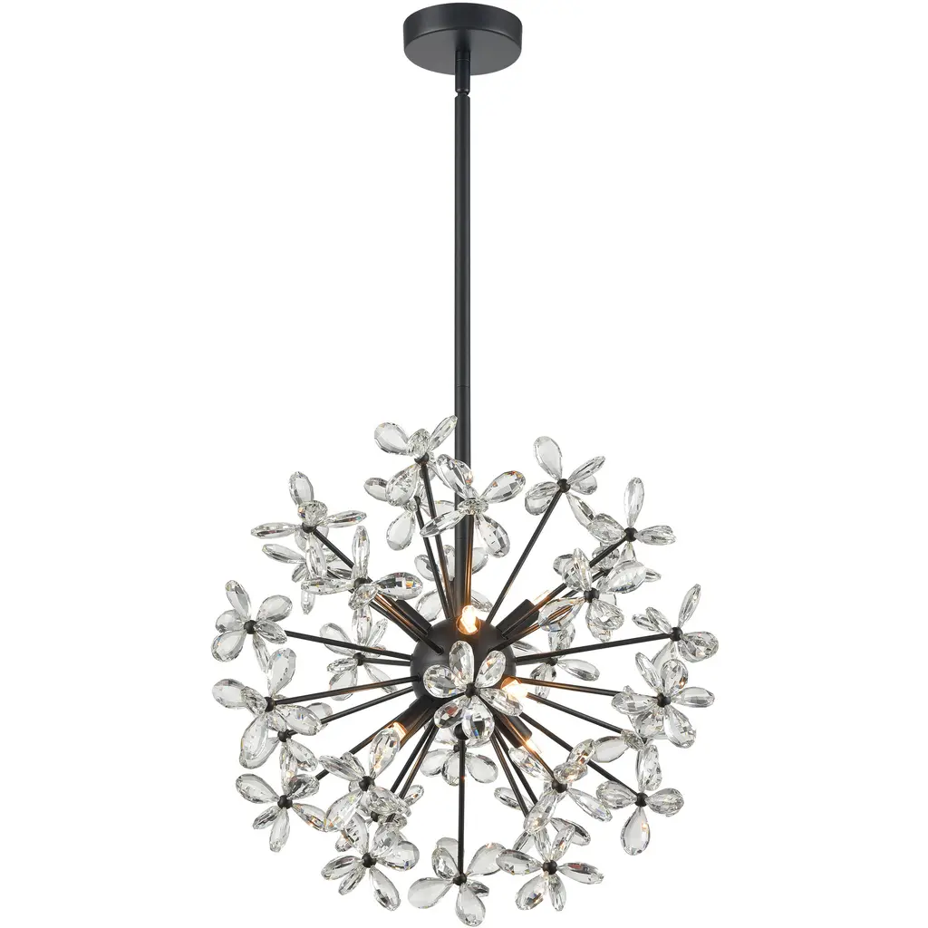 8-Light Floral Crystal Pedal Sputnik Matte Black Pendant Light.