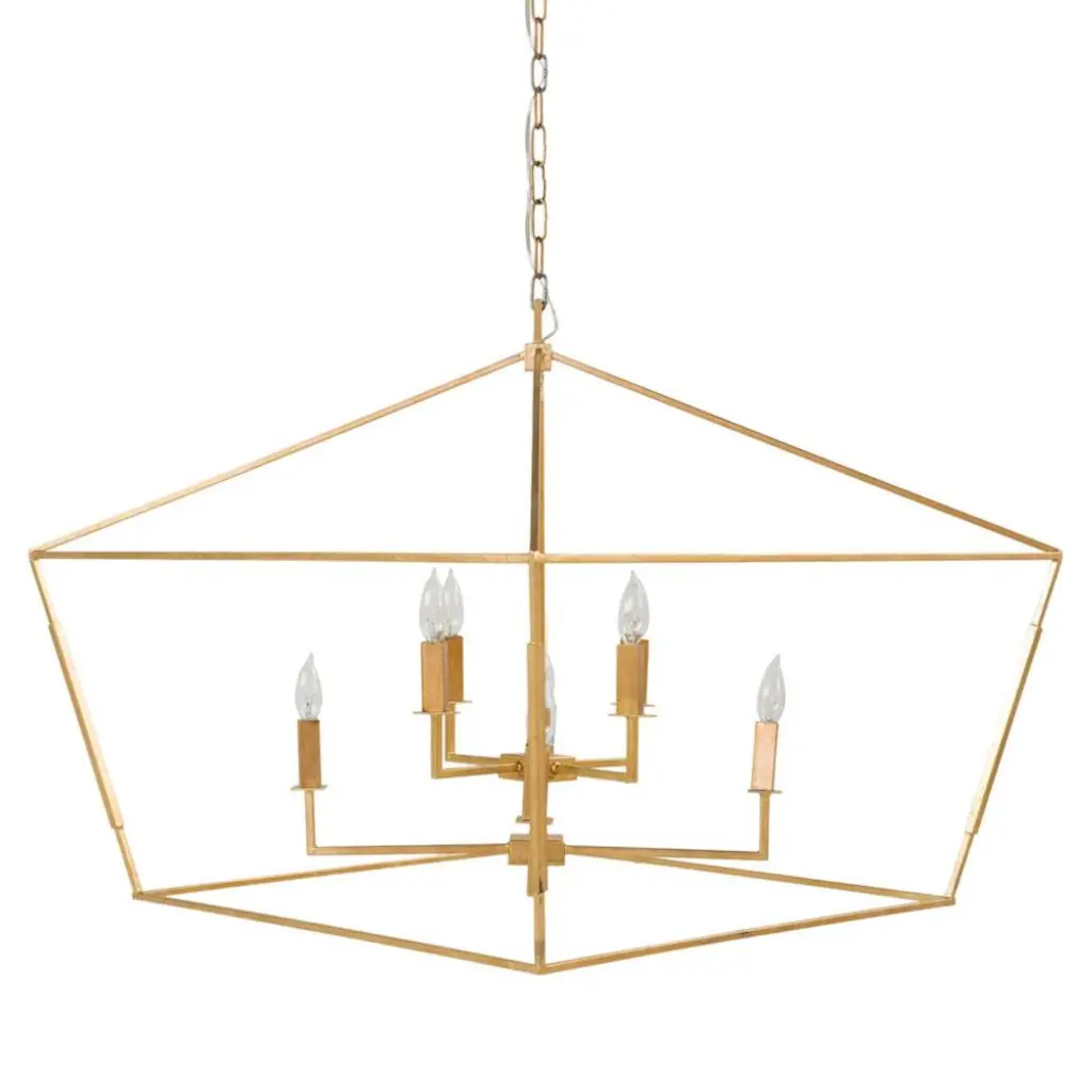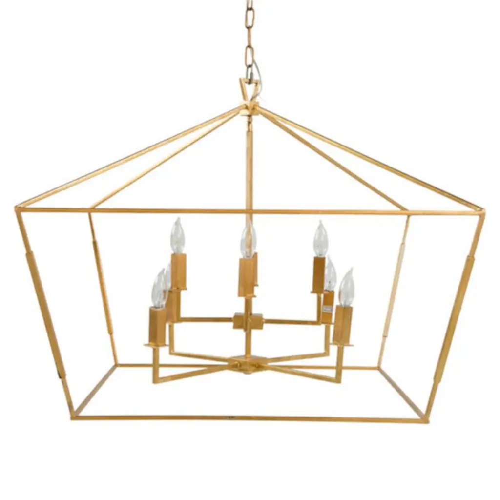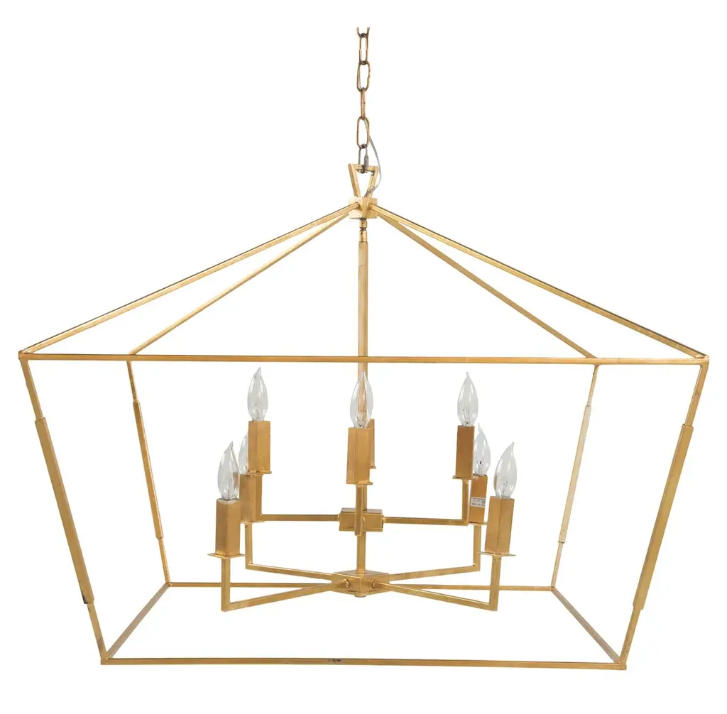 Adler Mid Century Vintage Gold Iron Lantern Style Chandelier - Large