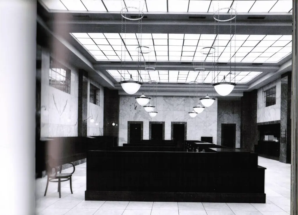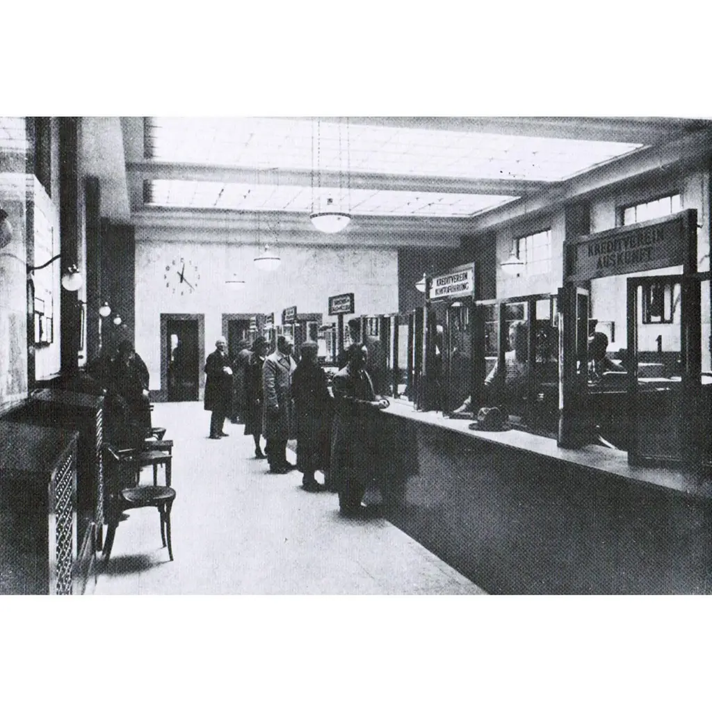 The Anglo-Austrian bank, founded 1864 with British capital, was an Austrian Bank in Vienna. In 1913, the bank had 43 branches.In 1914, Adolf Loos was commissioned with the renovation of the Mariahilfer Strasse branch.The modern chandelier can be manufactured with a central-hanging as to see on the image, or - as it was originally - hanging on four chains.Also available in a bigger version.Most components according to the UL regulations, with an additional charge we will UL-list and label our fixtures.
