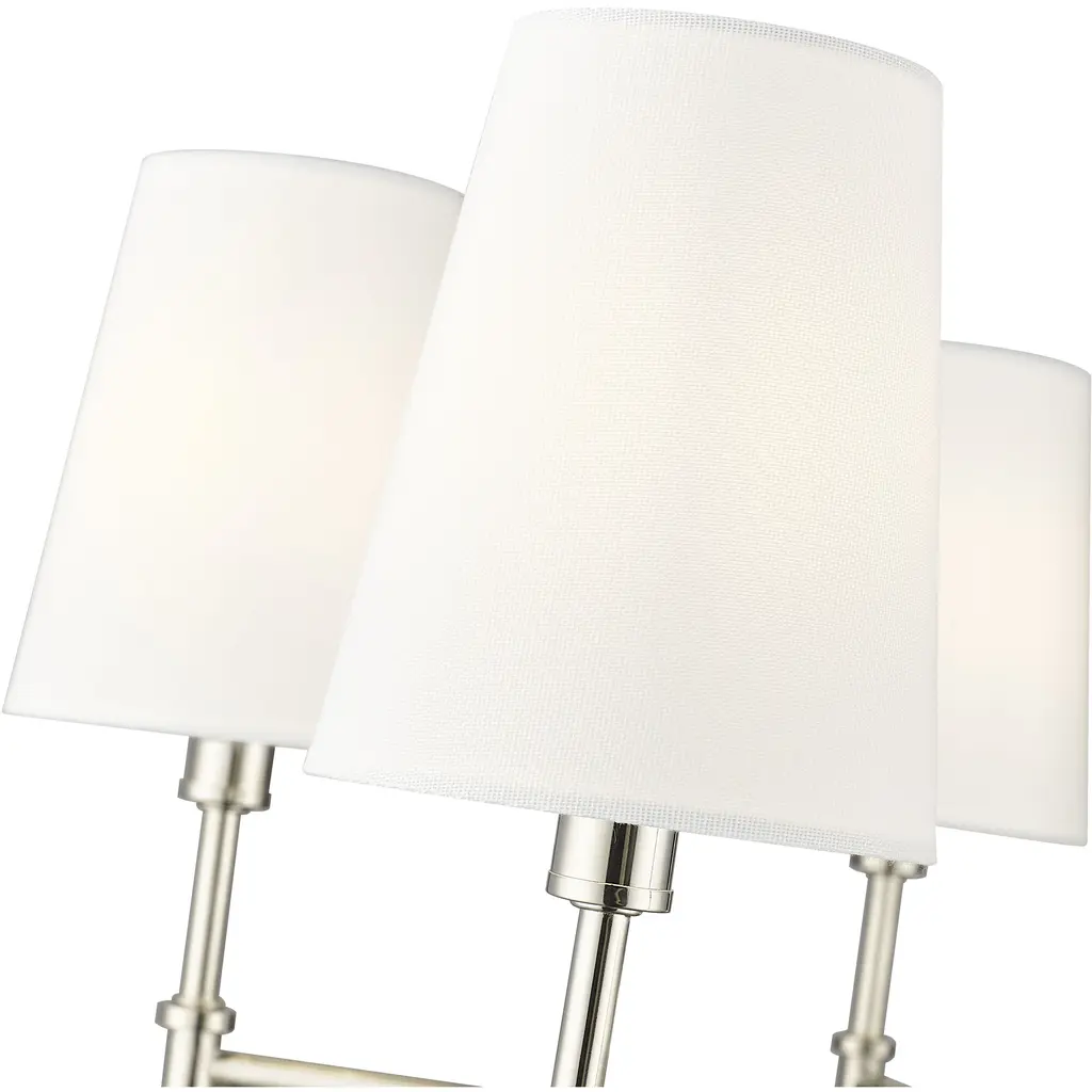 Refined and graceful, the Adorra Family puts a modern twist on classic Regency styling and creates a thoughtful design statement throughout any home. Crisp white linen shades complement the beautifully detailed fixtures in polished nickel, vintage brass, or matte black. Available as a 3-light semi-flush mount, 3-light candelabra, or 1-light sconces, these fixtures enhance any interior design scheme with a polished touch.