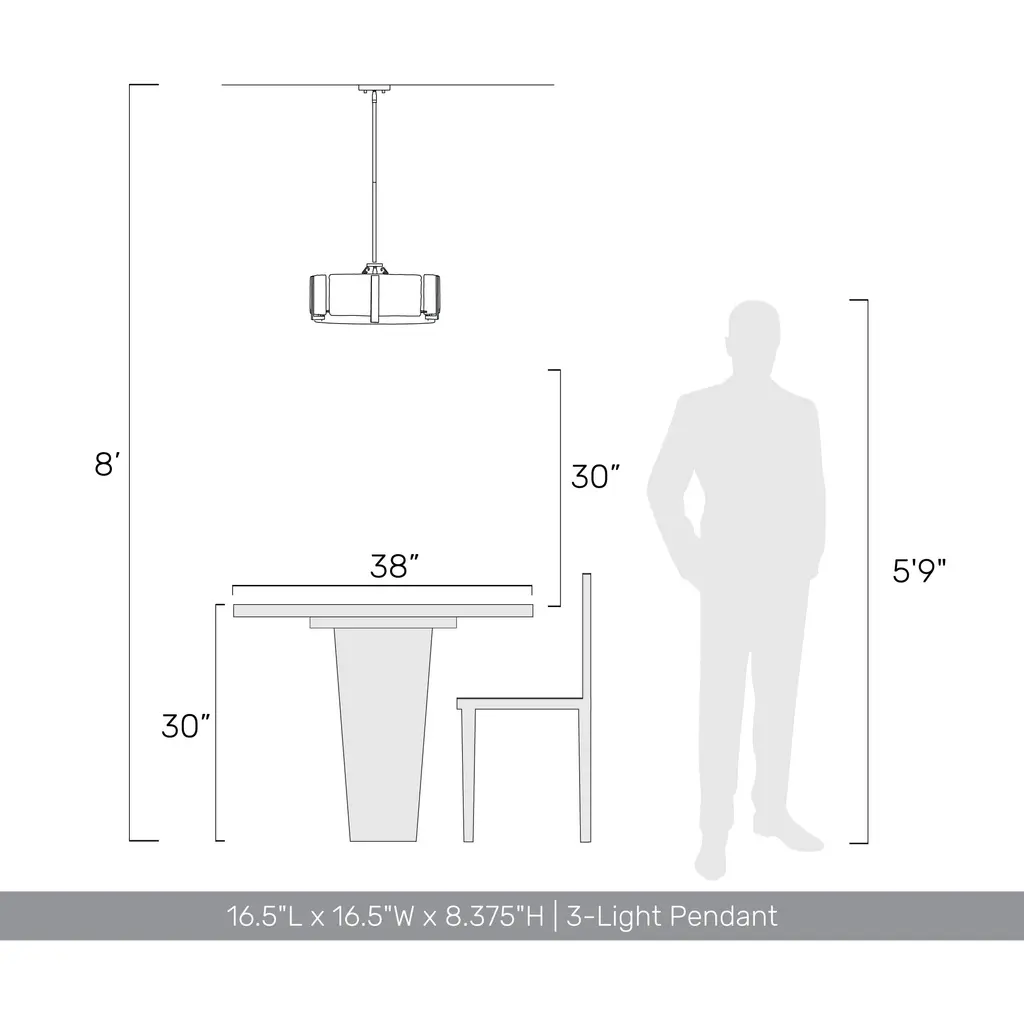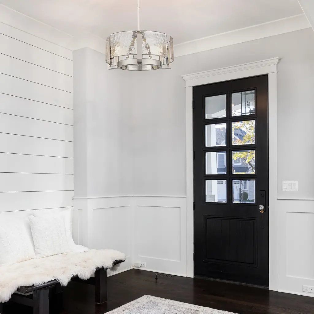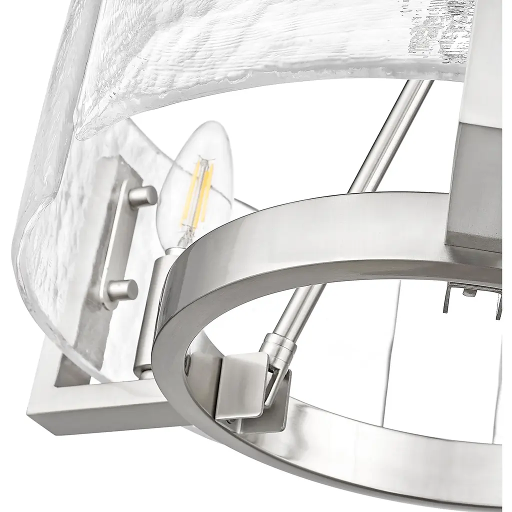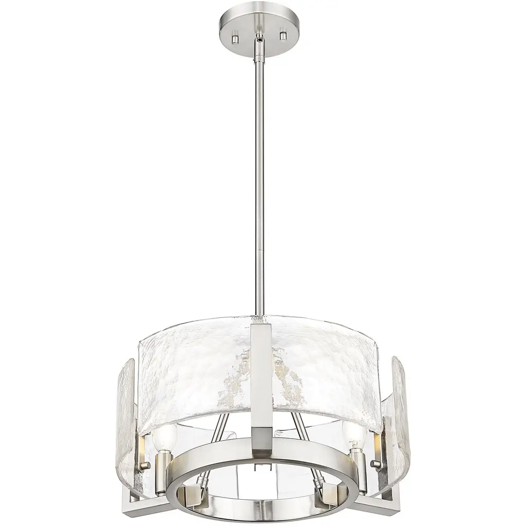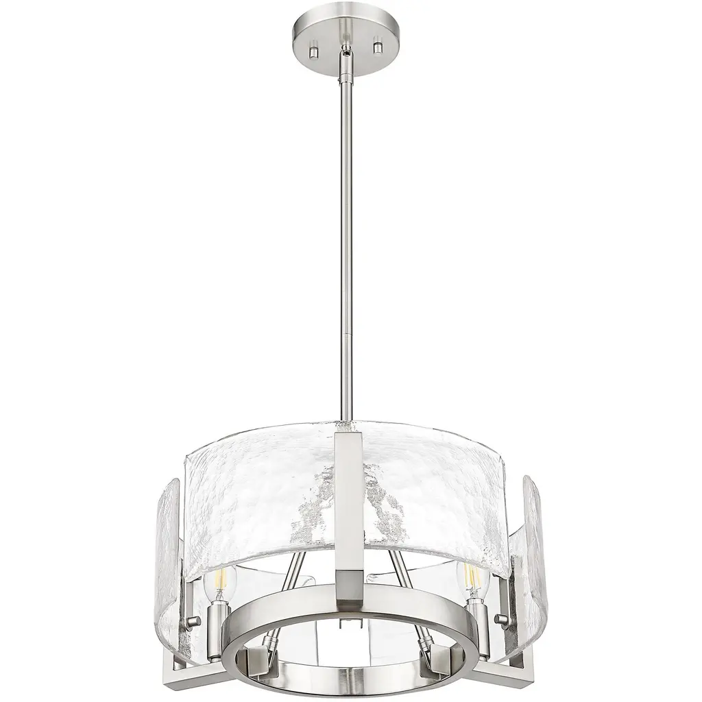 Bring classic elegance into your home with the Golden Lighting Aenon 3-light Chandelier in Pewter. Featuring a glass shade and a pewter frame, it creates a welcoming atmosphere. The hammered water glass shade, renowned for its intricate texture, captures the beauty of natural elements like flowing water, elegantly refracting light to cast intriguing patterns in your space. The subtle warmth of the pewter finish, accentuated by a satin lustrous sheen, enhances the old-world charm while remaining versatile and sophisticated.Designed for diverse applications, this chandelier is damp location rated, making it suitable for covered and semi-enclosed spaces such as bathrooms, covered porches, and laundry rooms. Its convertible design ensures adjustable hanging heights from 10.75" to 58", ideal for both flat and sloped ceilings.Overall dimensions are 16.5"W x 8.38"H x 16.5"D, requiring 3 E12 candelabra base bulbs (not included) with a maximum wattage of 60 per bulb, making it a perfect addition to elevate your decor with quality craftsmanship and timeless beauty.