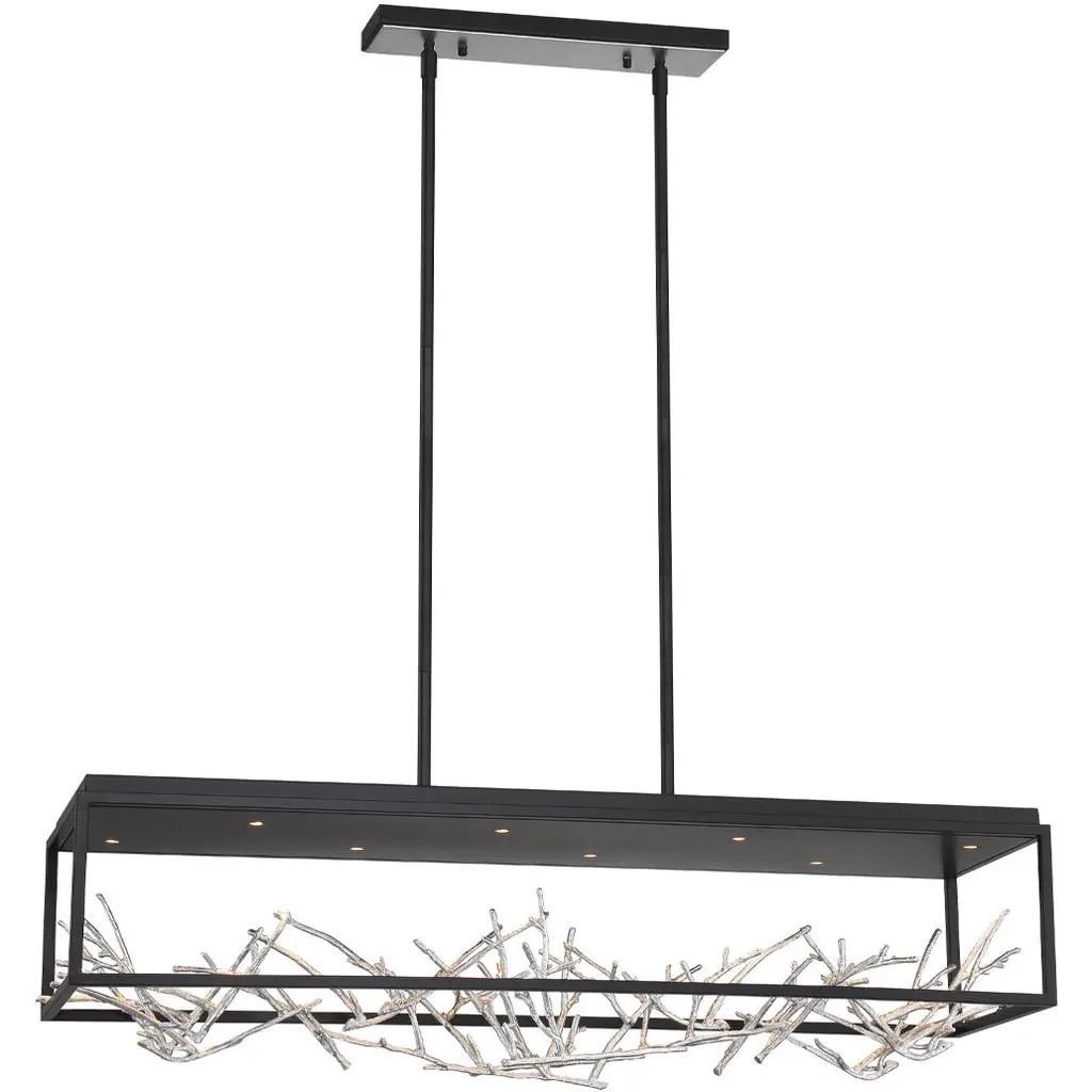 Free-flowing, gilded branches of gold and silver float elegantly within a stylish open cage constructed of cast brass and finished for the rigors of outdoor environments. The thin twigs are handcrafted with metal foil and accentuated by pinhole recessed LED lighting to add a luxurious glow to this nature-inspired collection.