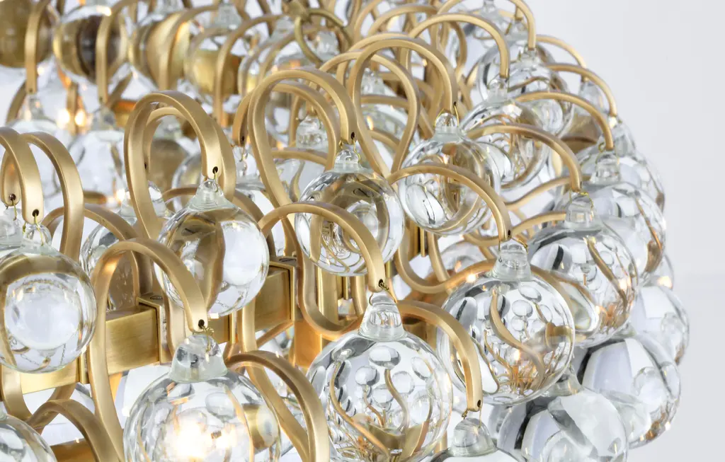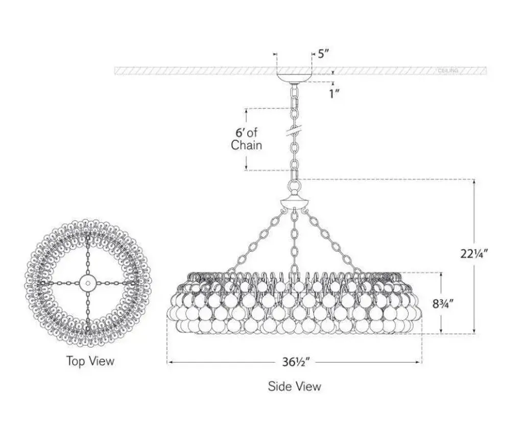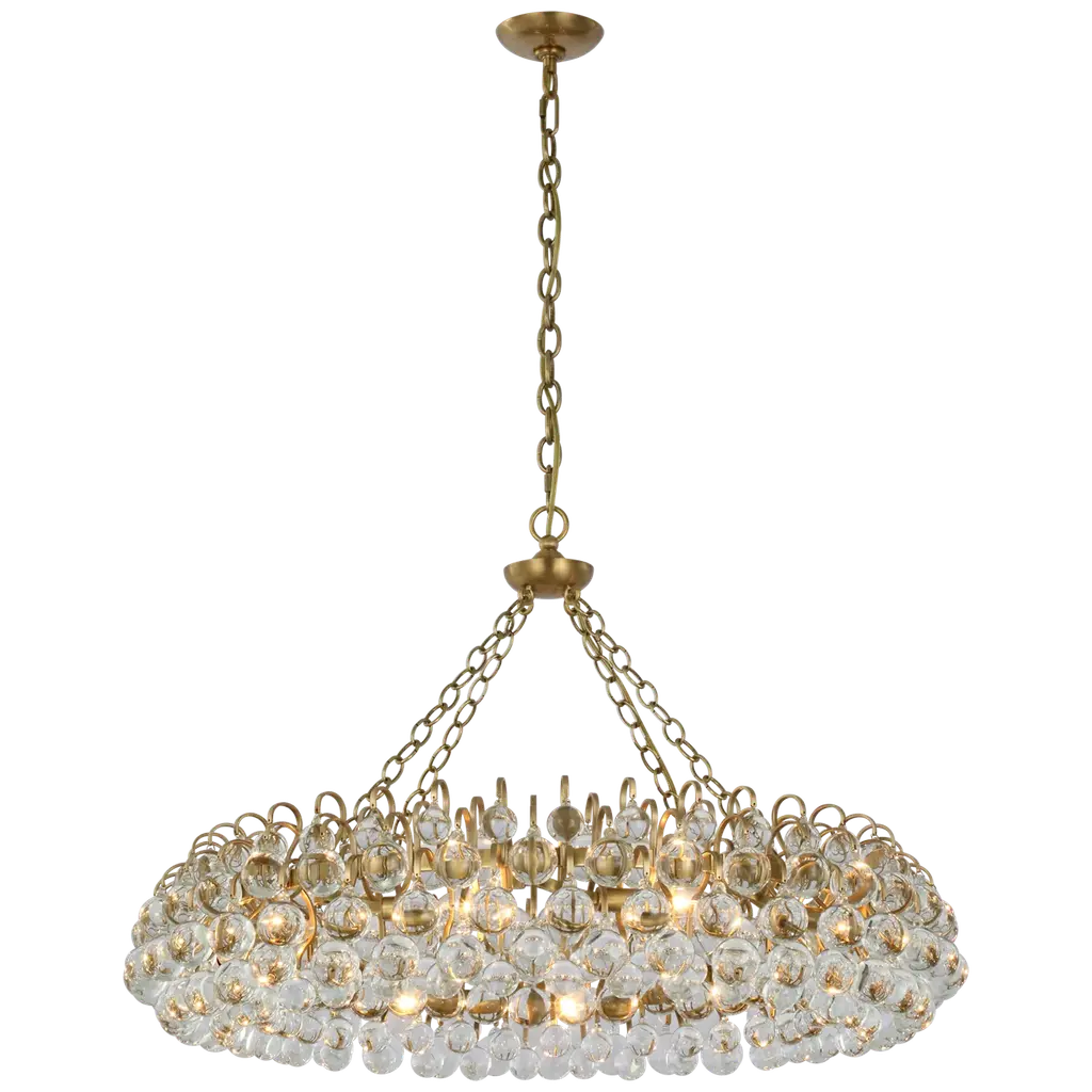 Bellvale Large Ring Chandelier in Hand-Rubbed Antique Brass with Crystal Designer: AERIN Canopy: 5" Round Mounting: Chain Shade Detail: No Option Socket: 10 - E12 Candelabra Wattage: 10 - 6.5 LED B11 Safety Rating Location: Damp Note: Requires Assembly