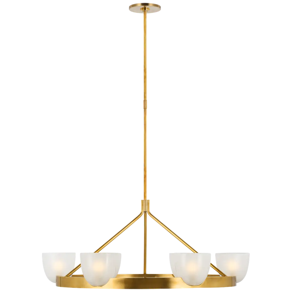 Aerin For Visual Comfort Signature Carola Large Ring Chandelier In Hand-Rubbed Antique Brass With Frosted Glass