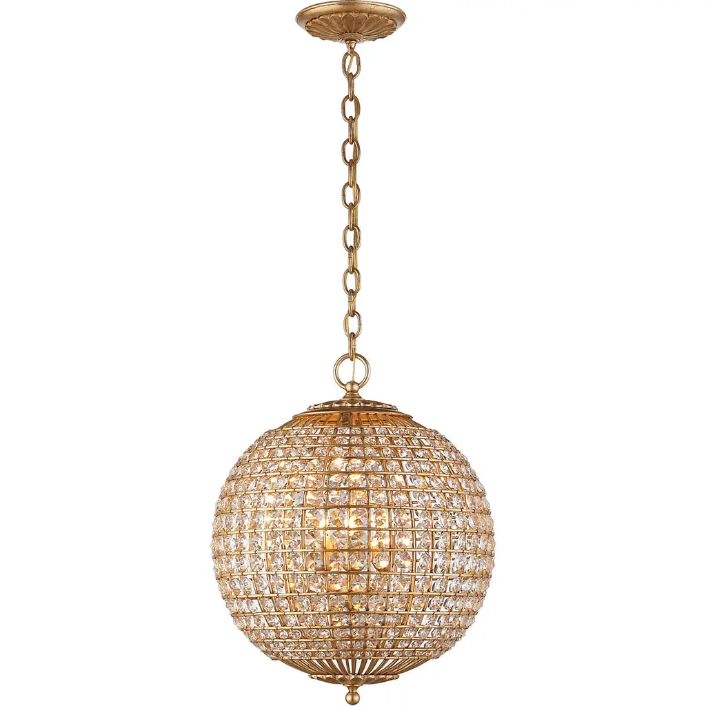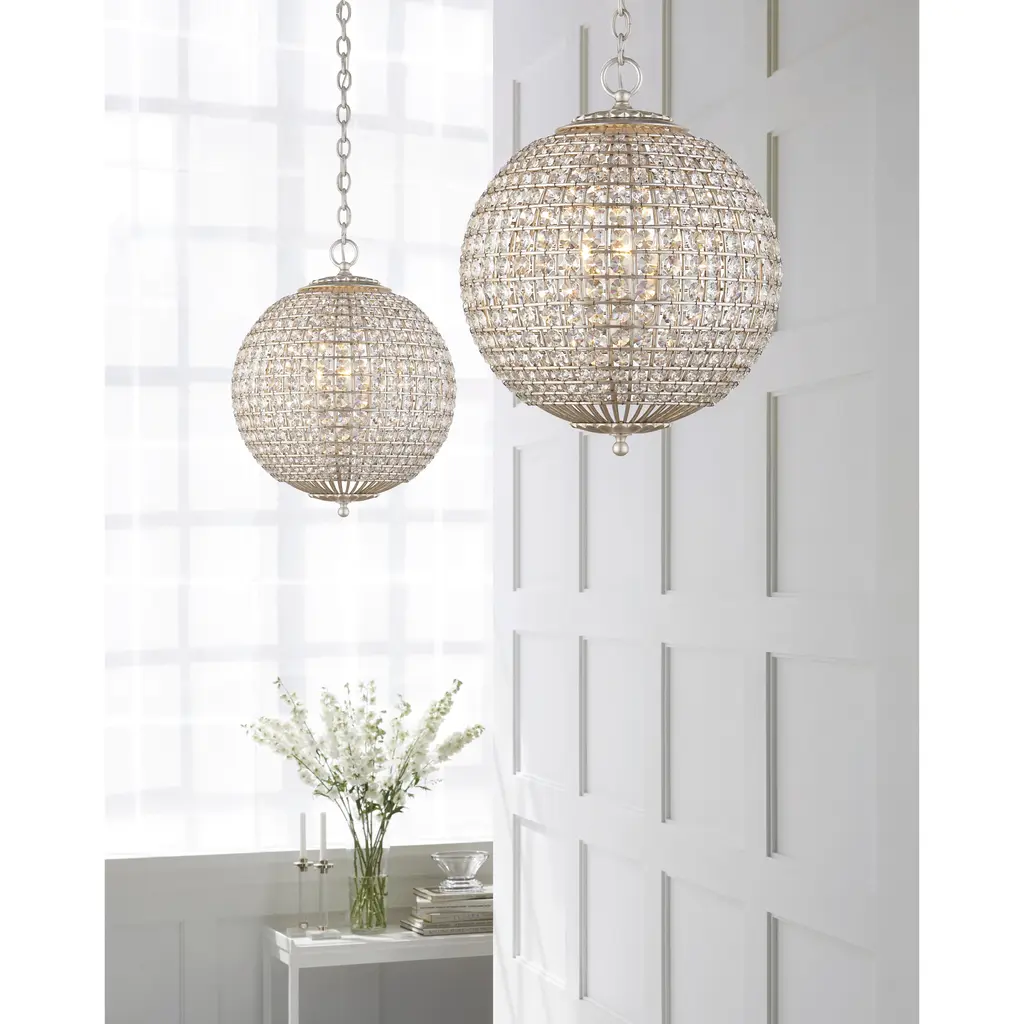 Renwick Small Sphere Chandelier in Burnished Silver Leaf with Crystal