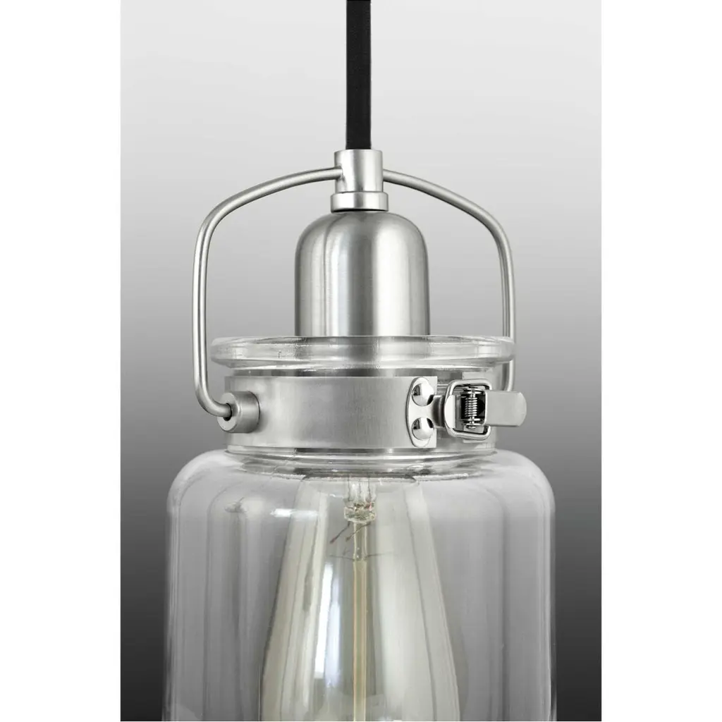A trend in home decor is the repurposing of antique pieces. Aft playfully follows this trend with an apothecary style clear glass diffuser held in place with a mechanical latch from a spice container. A glass shade showcases a thickened profile to create a vintage-style surface for a classic handmade appearance. The vintage design is a perfect complement to several decor styles including the popular Farmhouse trend. Aft is a versatile style that can be displayed in three different ways: assemble with the included optional spanner and long or short stems for a unique cord-hung style chandelier, or let the lights hang in a more casual cluster.