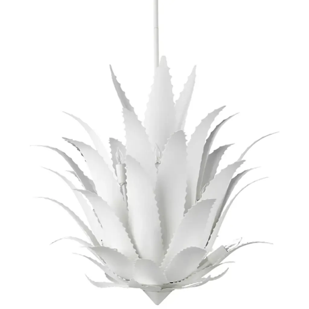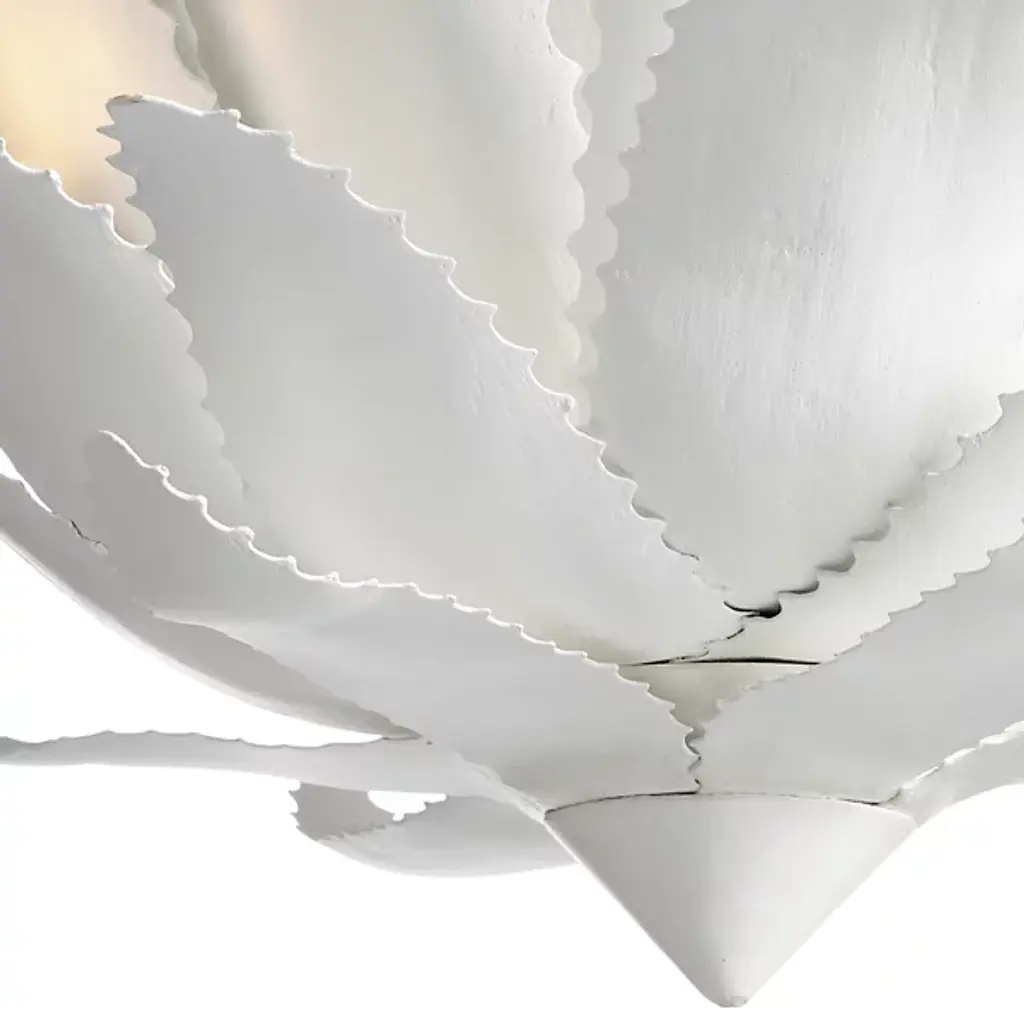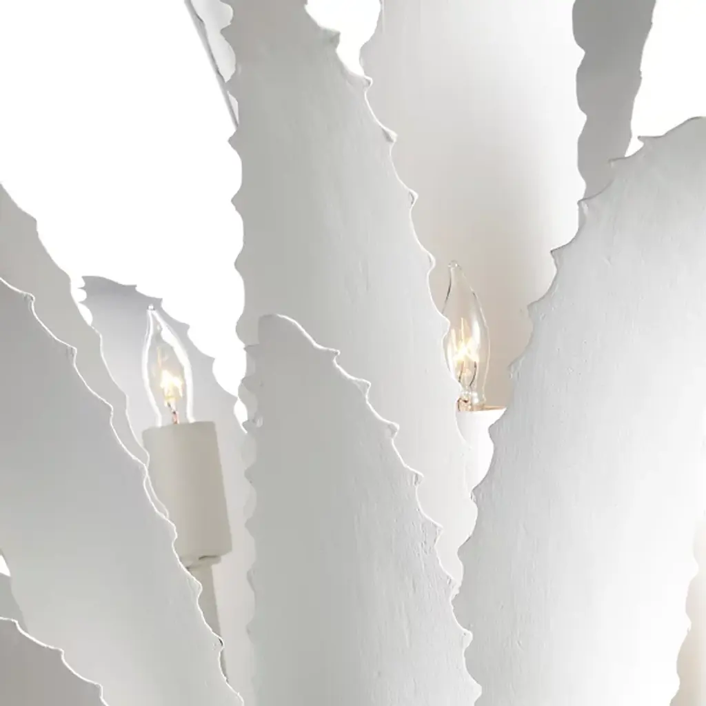 The Agave Chandelier from Currey & Company captures the essence of its namesake plant through dramatic metal fronds curling upward. Designer Marjorie Skouras translates her passion for Yucatan flora into this botanical-inspired piece. The wrought iron construction allows for precisely shaping each spiky leaf, while a gesso finish unifies the composition. Light filters between the overlapping fronds, creating organic shadow play. The adjustable suspension system ensures perfect positioning in various settings. This chandelier brings the sculptural beauty of desert plants indoors.