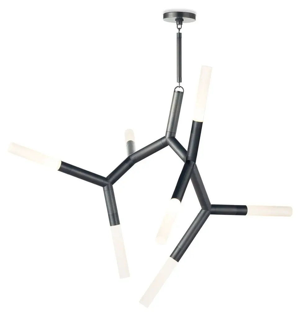 Spaces of work from the 1849 Gold Rush in California have inspired the rustic, traditional Agnes 6-Light Chandelier by Roll & Hill. The structure and branches of the chandelier are made from machined Aluminum that is then offered in a wide range of metallic finishes. At the end of each branch is a glass diffuser that is offered in different shapes, creating angular or straight looks dependent on the choice. With an earth-shattering design that is suitable for any modern space, the chandelier provides indirect ambient lighting in living rooms and dining rooms.