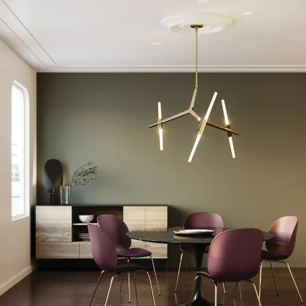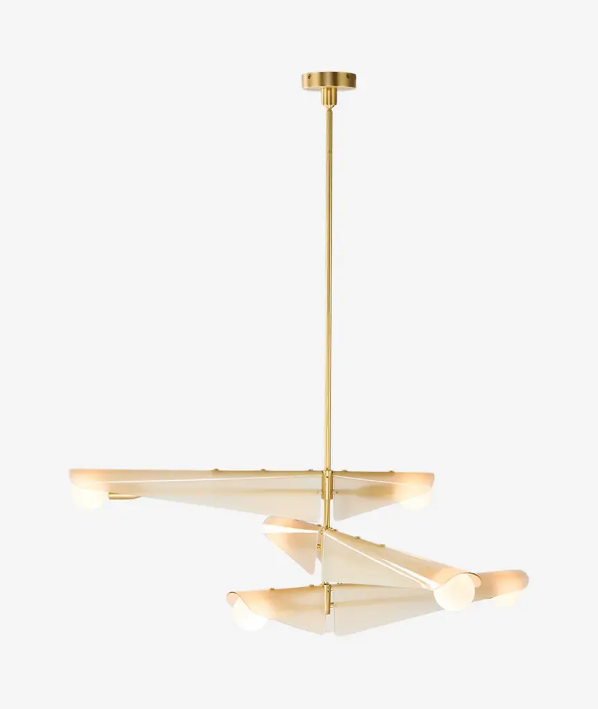 Spaces of work from the 1849 Gold Rush in California have inspired the rustic, traditional Agnes 6-Light Chandelier by Roll & Hill. The structure and branches of the chandelier are made from machined Aluminum that is then offered in a wide range of metallic finishes. At the end of each branch is a glass diffuser that is offered in different shapes, creating angular or straight looks dependent on the choice. With an earth-shattering design that is suitable for any modern space, the chandelier provides indirect ambient lighting in living rooms and dining rooms.