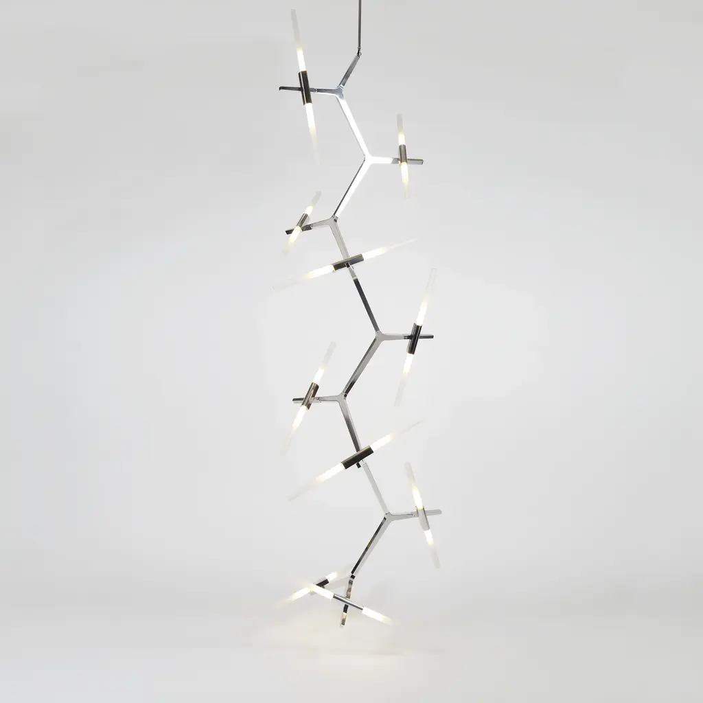 Bring a touch of luxury and sophistication into your space with the Agnes Cascade LED Chandelier from Roll & Hill. Inspired by a heroine of the same name during the 1849 California Gold Rush, this candelabra-turned-chandelier features articulating joints and glowing glass tubes for easy customization, allowing you to create a truly unique and elegant ambiance. Highlights