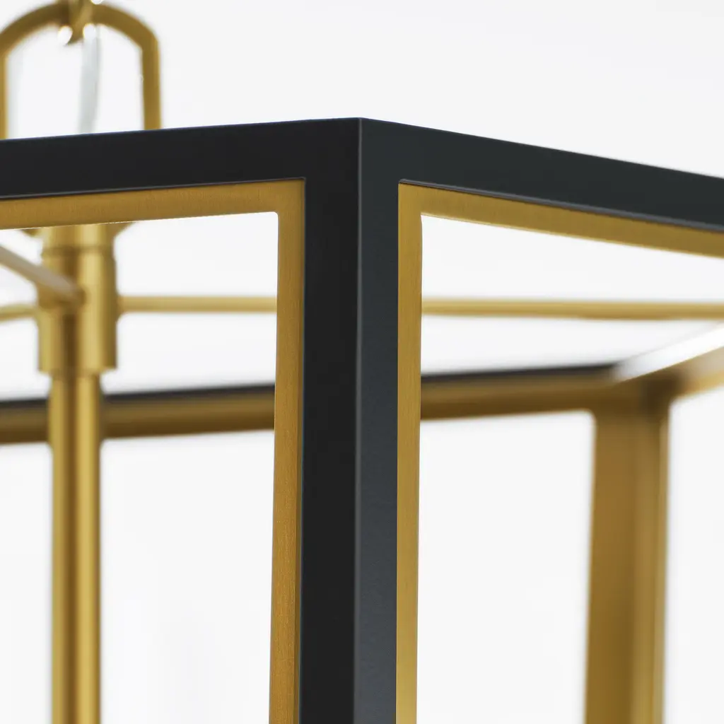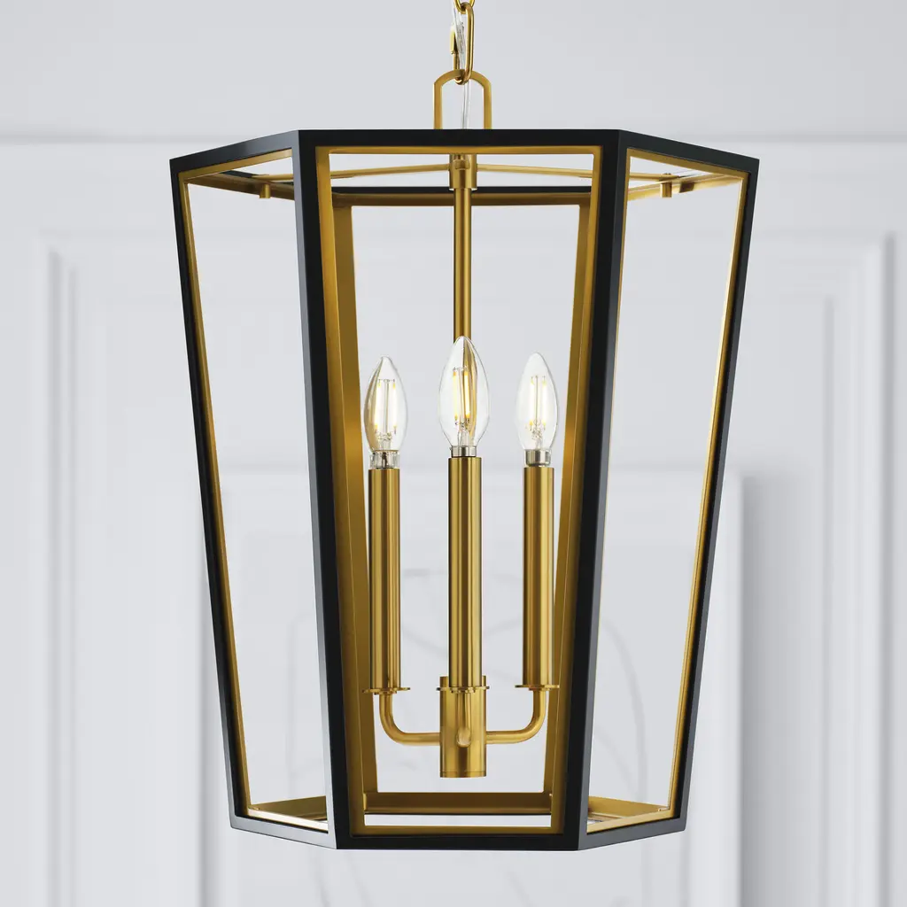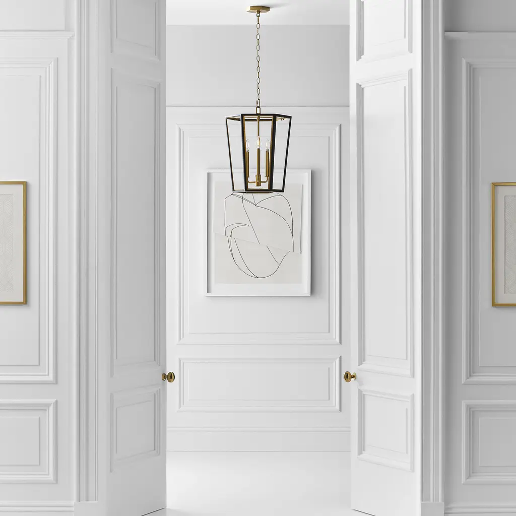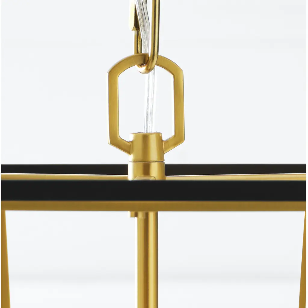 The Curt Three Light Lantern by Alexa Hampton is a modern take on an antique lantern. Elegantly crafted of steel with a Matte White or Midnight Black finish and accented with golden details. A stunning Hexagon shaped hub adds drama to the design.