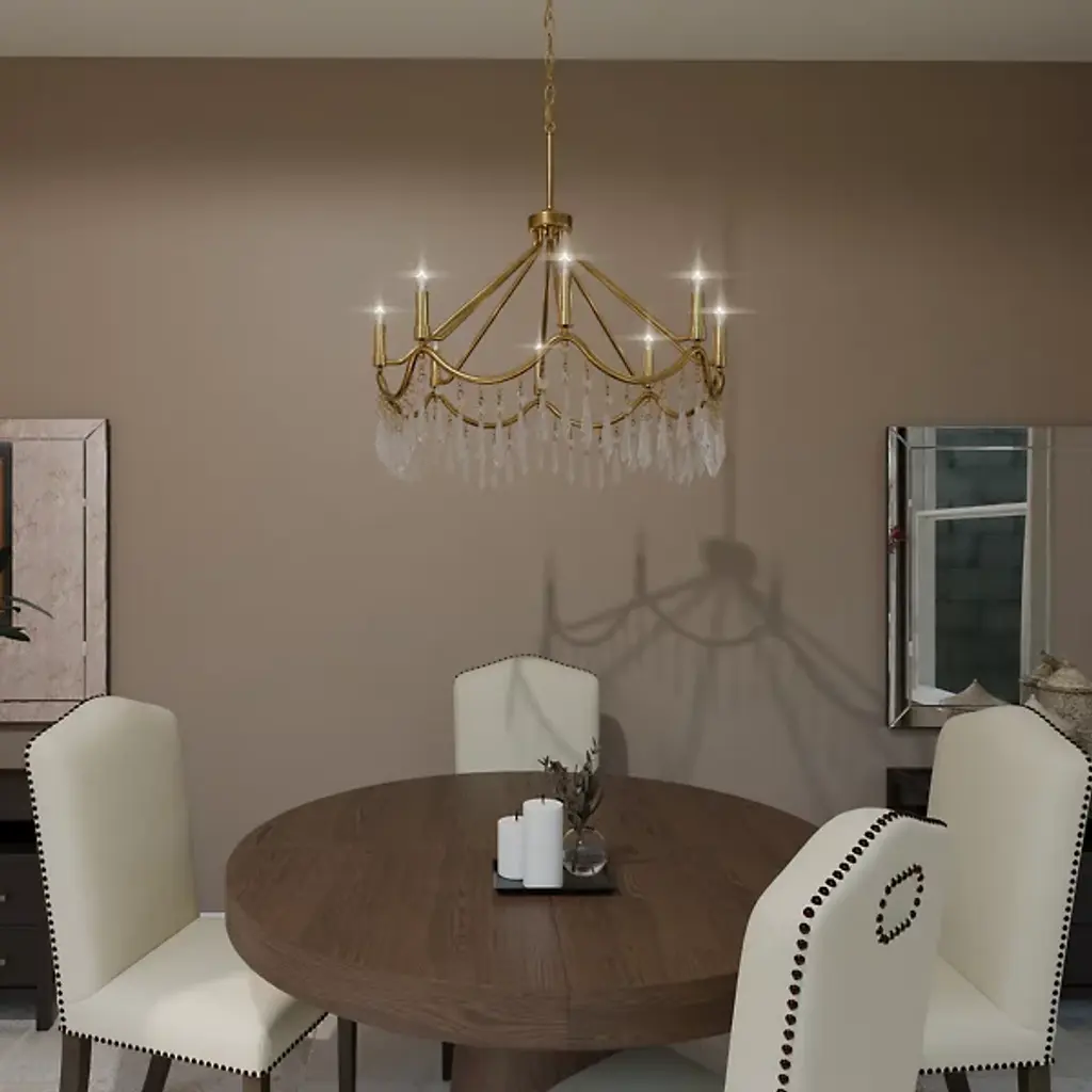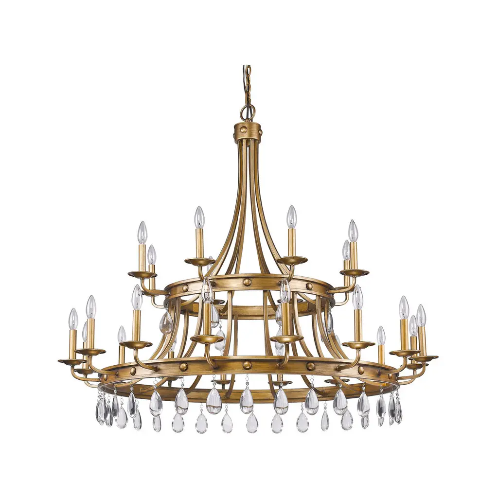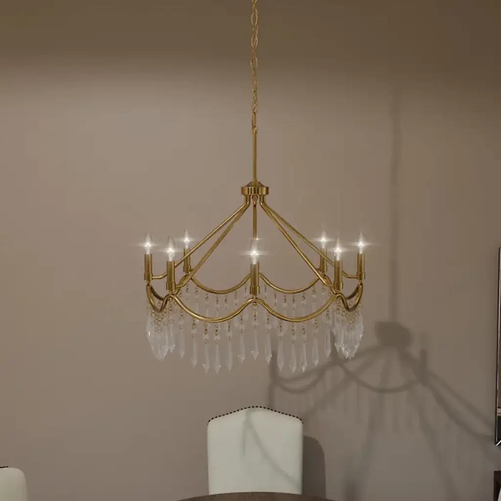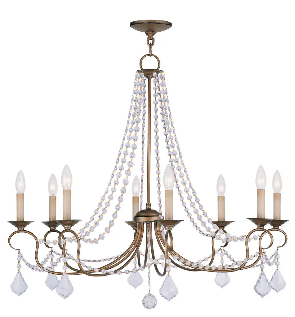 Experience the captivating allure of the Airedale Chandelier from Quoizel, elevating your space with luxurious charm. Its aged brass finish and clear crystal drops exude opulence and sparkle, perfect for any room. Whether in living rooms, bedrooms, home offices, or dining areas, its elegant design offers versatile styling options. Plus, with included candle covers, customization to match your desired aesthetic is effortless. Illuminate your home with timeless elegance and sophistication.