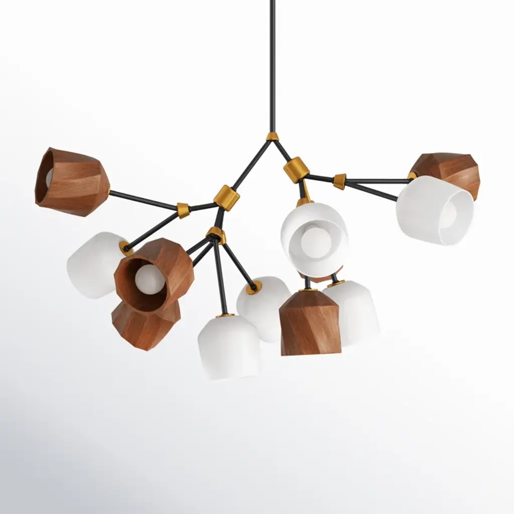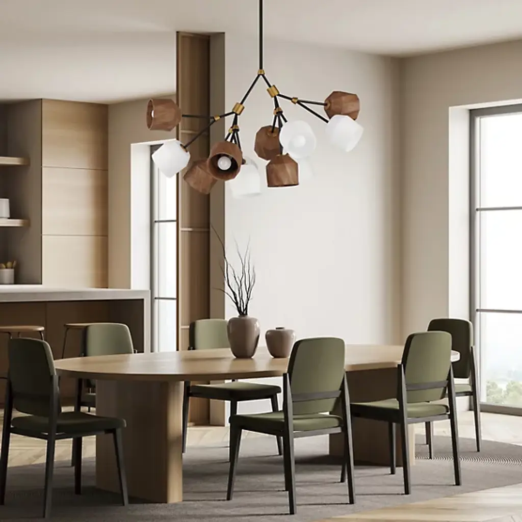 The Akimbo Chandelier from Maxim Lighting exudes contemporary design and rustic charm. Crafted with care, this chandelier boasts 2 tiers of gracefully designed wood and glass shades. The carefully curated combination of materials creates a captivating interplay of textures and shapes, adding an inviting warmth to your living space. The chandelier is a visual delight. It is illuminated by integrated LEDs and is dimmable when used with a separately sold ELV dimmer.