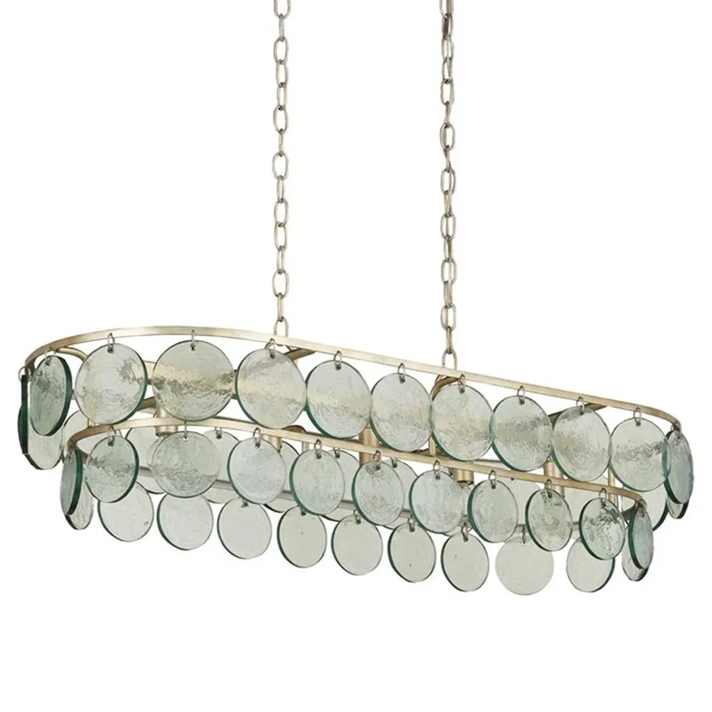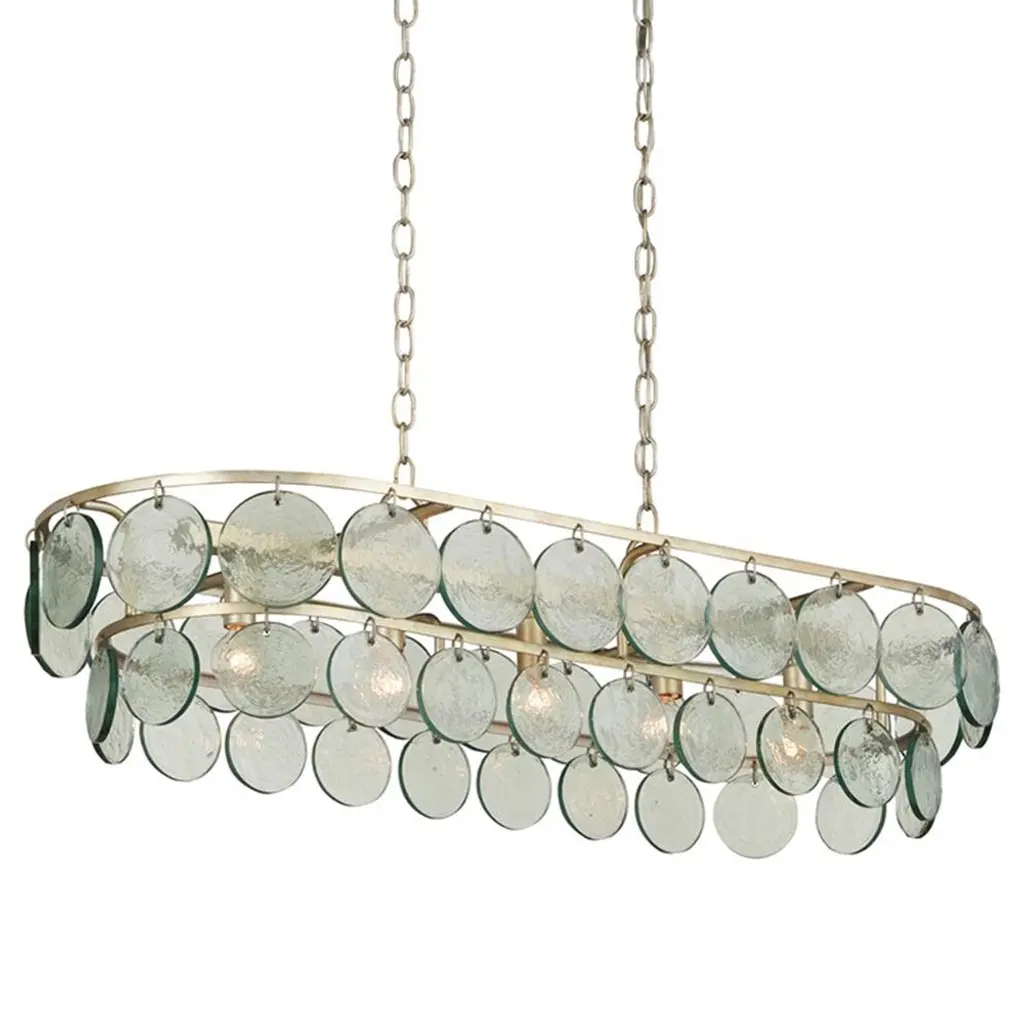 Alana Coastal Beach Glass Discs Silver Leaf Iron Frame Chandelier