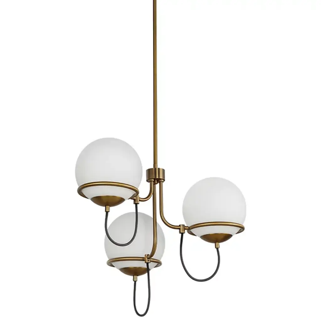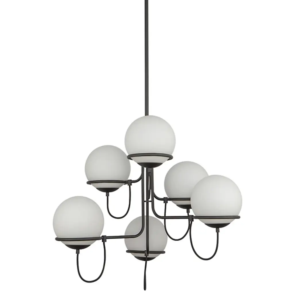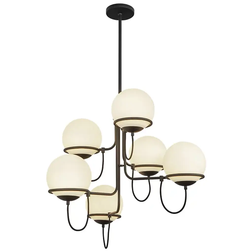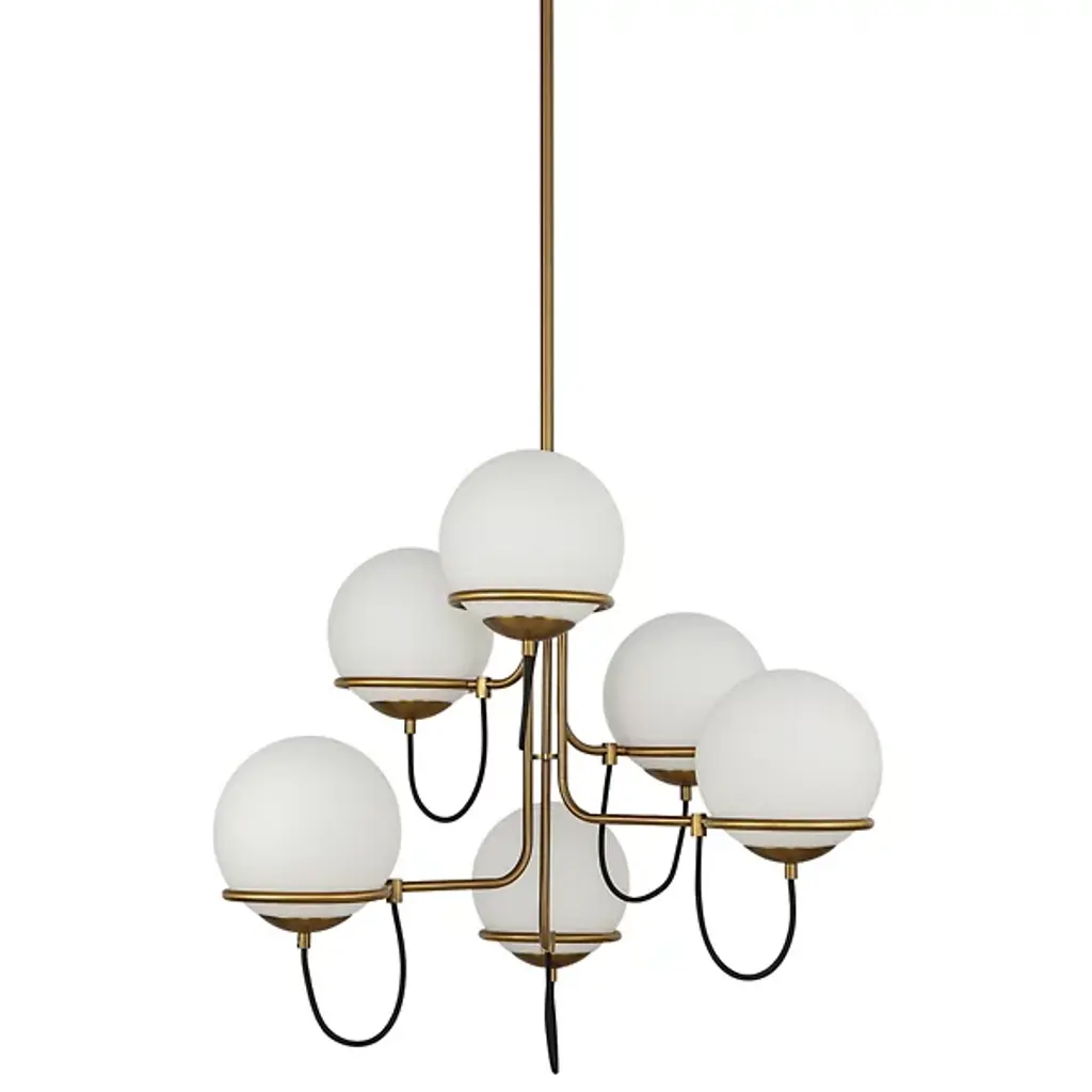 The Alba Chandelier from Alora Mood is crafted with care. This chandelier features a steel frame and opal glass shades, creating a harmonious blend that adds sophistication to your interior. With a single tier and globe-shaped shades, Alba emanates a transitional aesthetic, making it a versatile addition to various interior styles. Designed for customization, it is dimmable when used with a separately sold ELV dimmer. Plus, it offers sloped-ceiling adaptability.