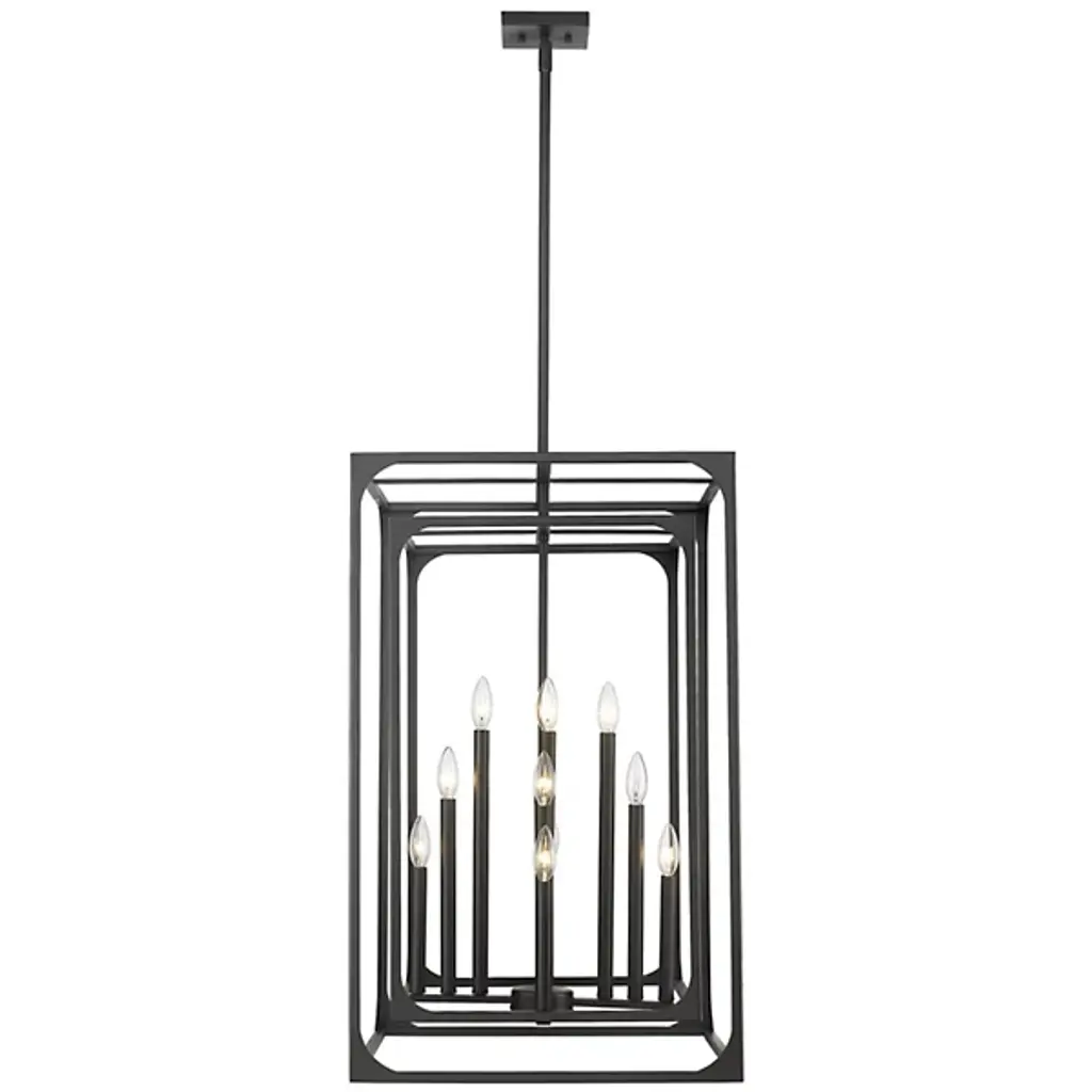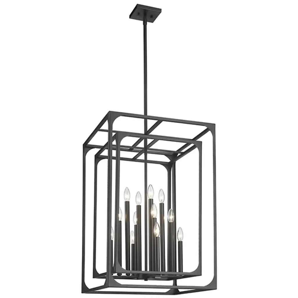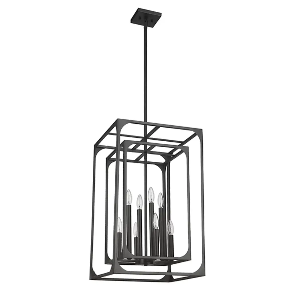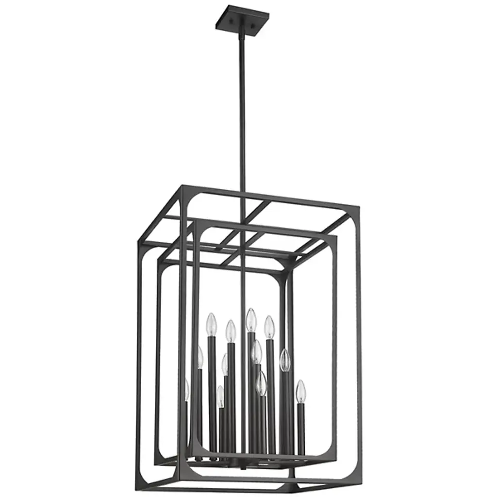 The Albert Chandelier from Alder & Ore adds the dynamic visual power of geometric design. Ideal for modern or industrial spaces, this chandelier showcases an impactful fusion of geometry and minimalist aesthetics. It boasts linear elements and a structured aesthetic, perfectly aligned for the latest minimalist decor trends. The candelabra bulb mounts are thoughtfully arranged in a graduated pattern, taking center stage within a dual-layered, openwork matte black metal frame. Illuminate your space with a bold, captivating style.