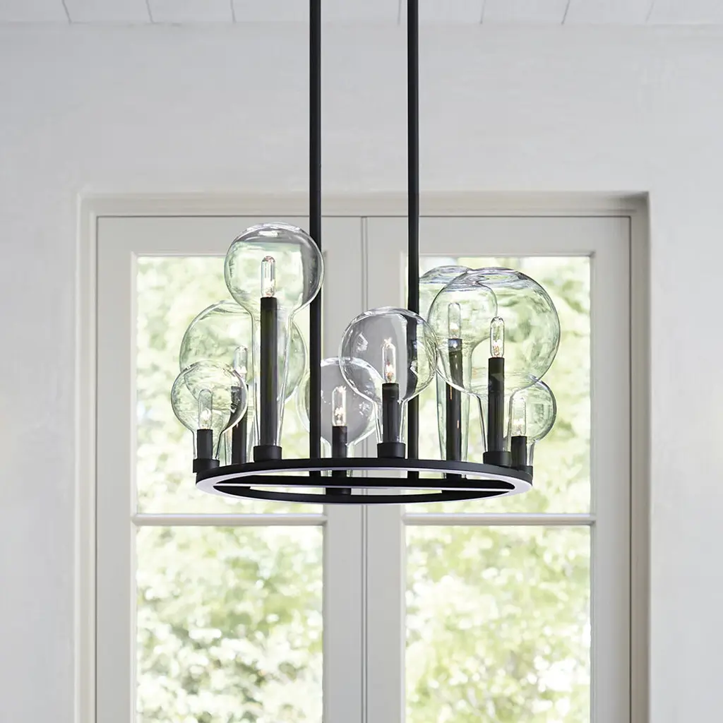 Inspired by the vintage flasks of a chemistry classroom, Alchemy is a unique statement piece. Its tapered globes instantly stand out in a variety of spaces, while the open silhouette enhances its sophisticated edge.