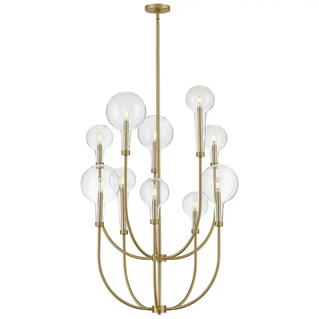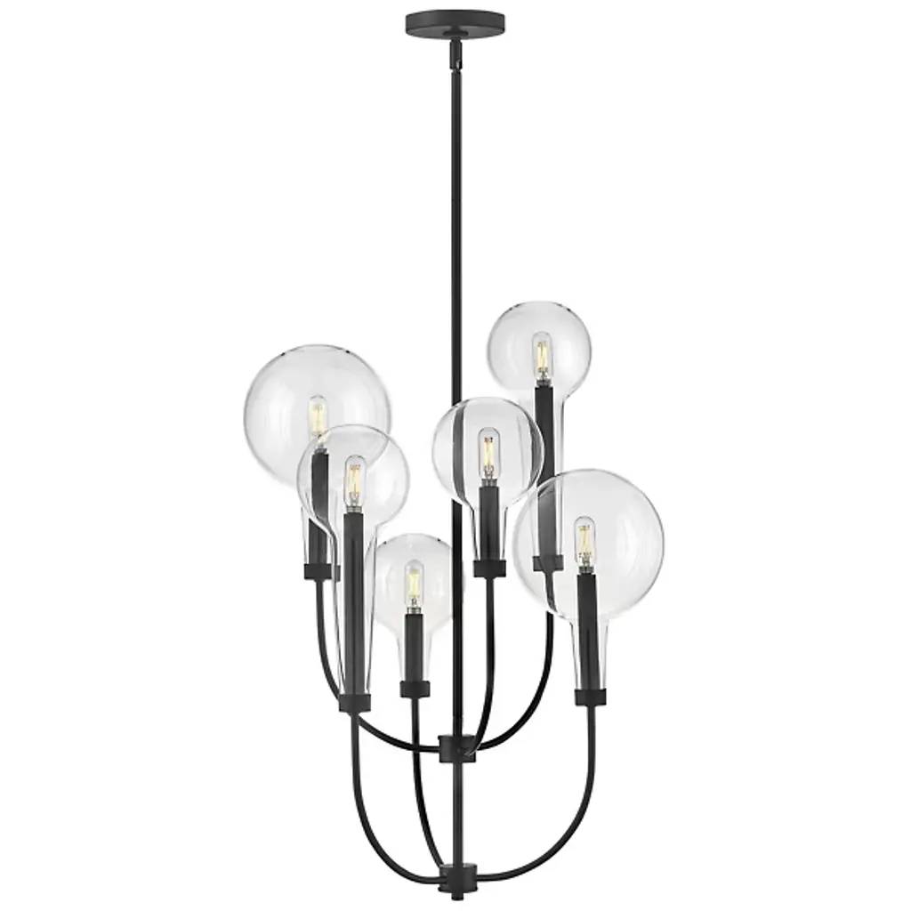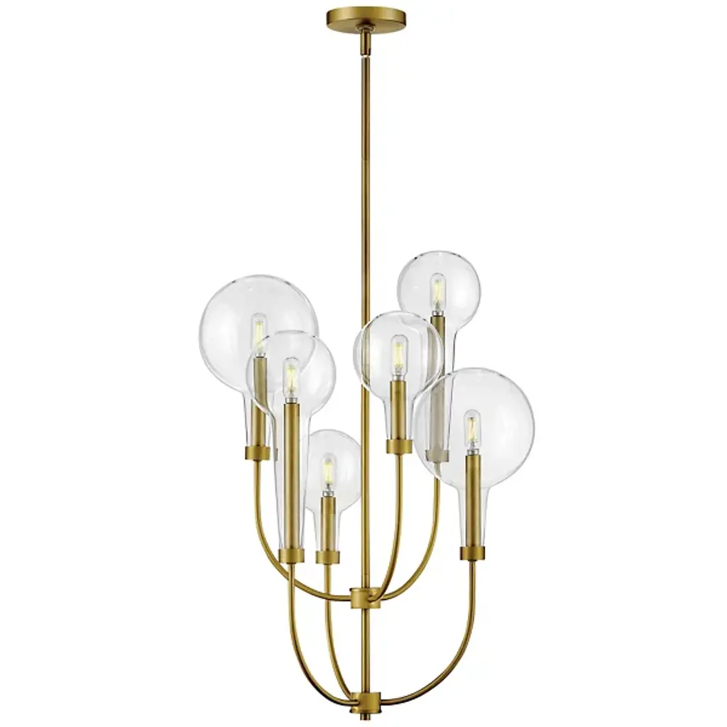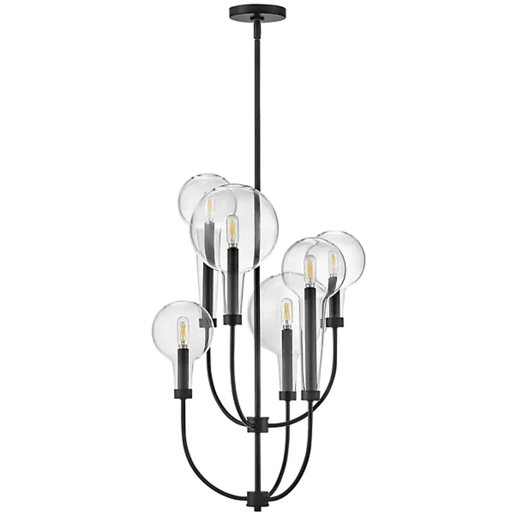Inspired by the vintage flasks of a chemistry classroom, the Alchemy Chandelier by Hinkley Lighting is a distinctive statement piece. Its tapered globes instantly stand out in a variety of spaces, while the open silhouette enhances its sophisticated edge. Finely contoured metal arms support a collection of candelabra base LED lamps that brings brilliant illumination to your surroundings.
