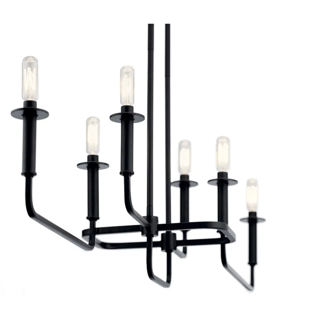 Alden 6 Light 11 Inch Black Chandelier Linear Ceiling Light, Single