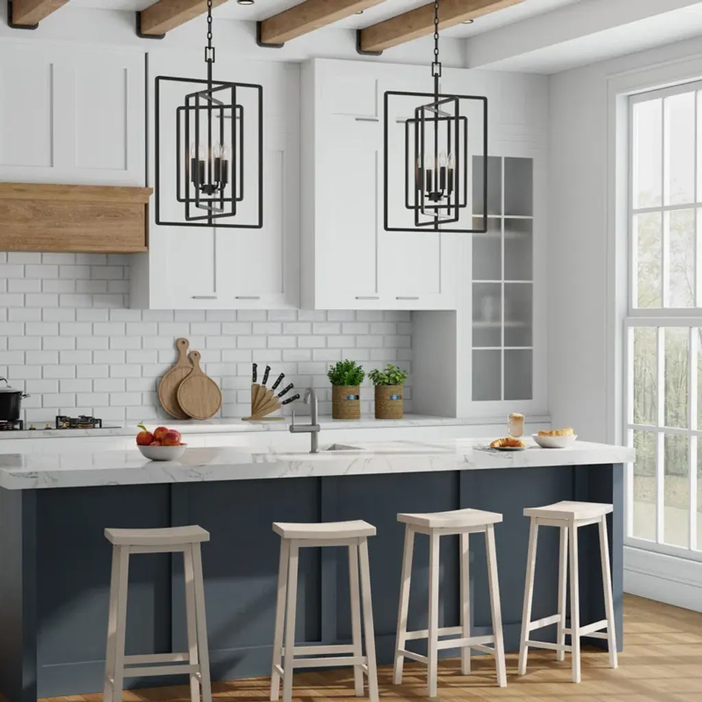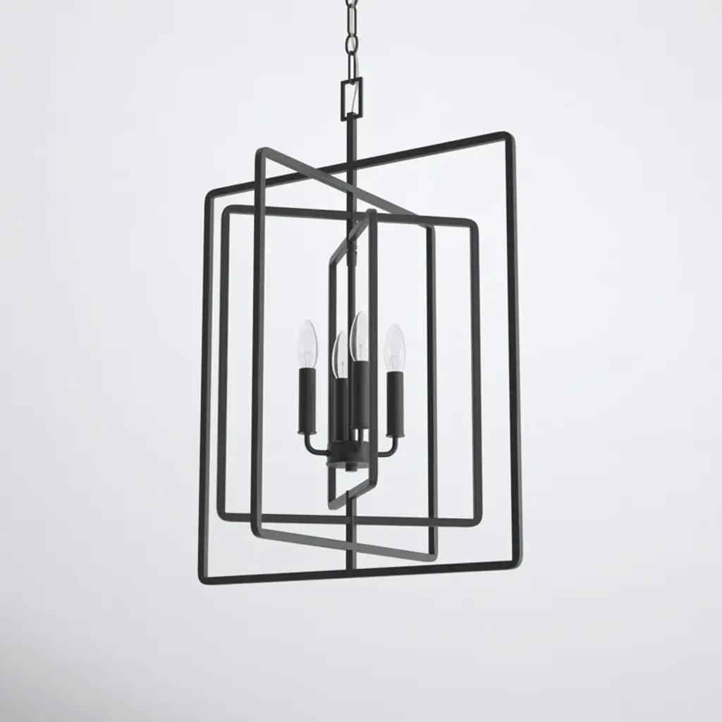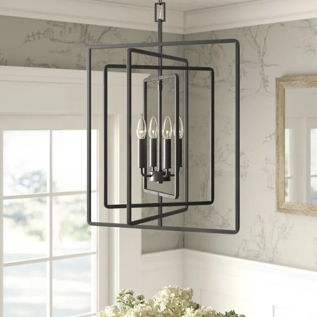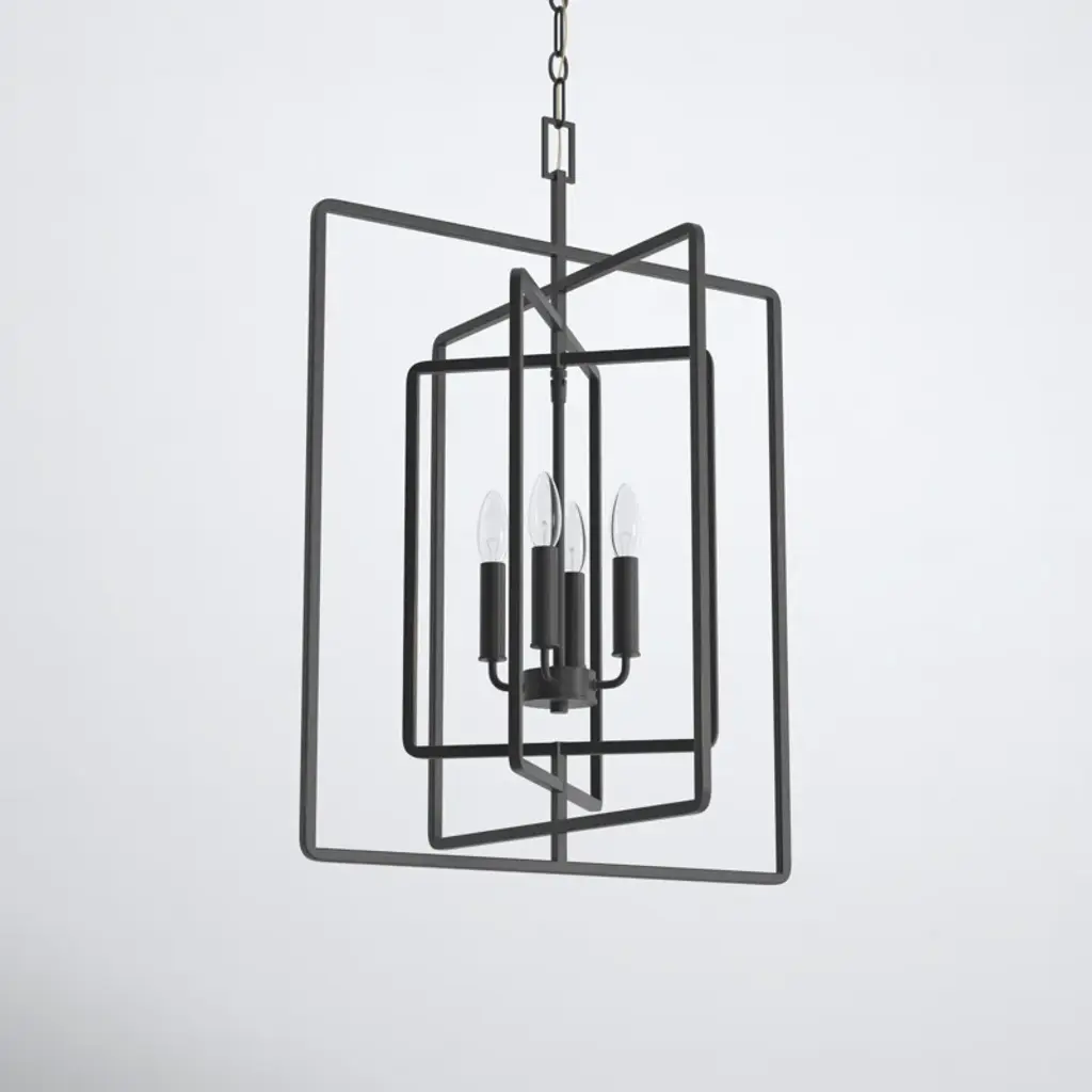 The impressive scale of the Aldren chandelier is accentuated by its vertical rectangular form. At 27 inches tall, this pendant is made of iron in an oil-rubbed bronze finish and conveys a confident, geometric air. Use this fixture as a pair in a modern farmhouse or industrial kitchen, or grace an entryway with its elegant simplicity. Includes a 6-foot chain to adjust height.