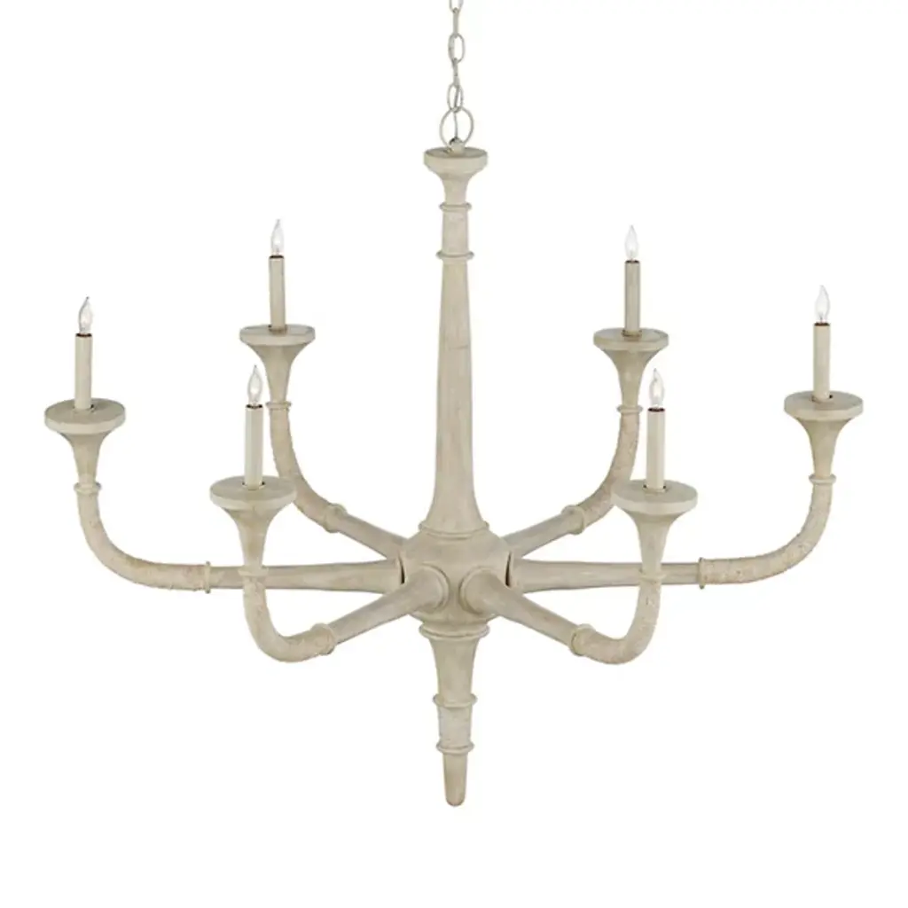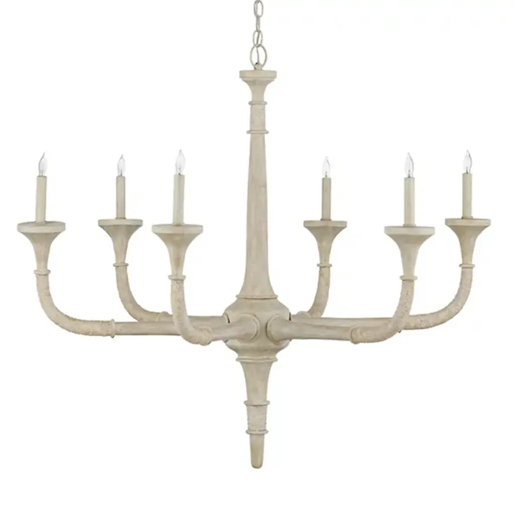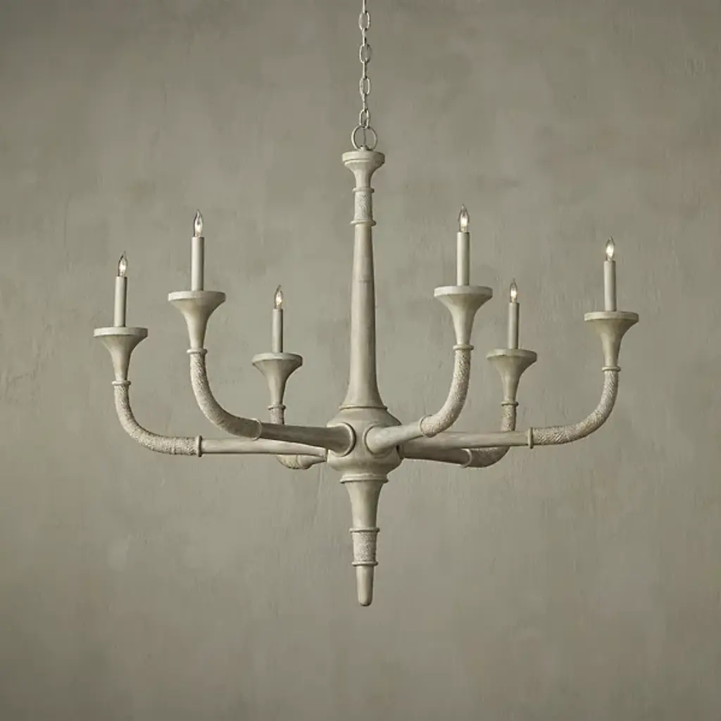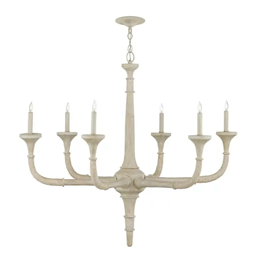 The Aleister Chandelier from Currey & Company exudes a subtle yet captivating textural beauty. Designed by designer Tom Caldwell, it's covered in a sandstone finish, blurring the lines between wood, abaca rope, and wrought iron, descending from above via a chain, creating a harmonious and memorable composition. With a distressed look and a coastal presence, this chandelier becomes a seamless addition to spaces with a coastal aesthetic. The chandelier embraces distinct natural and artisanal properties, bringing a touch of Transitional style with its organic charm.