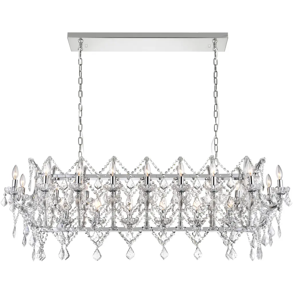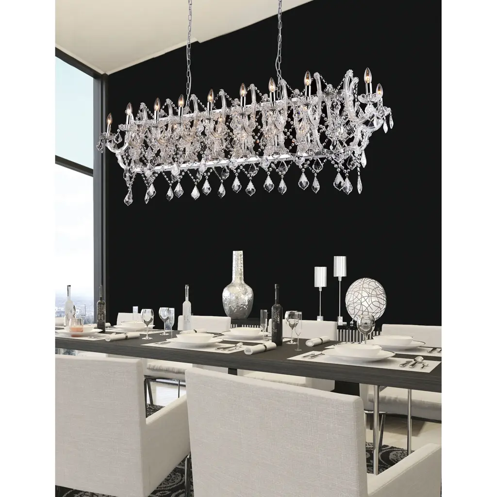 Giving out a lot of light and glam, the Aleka 24 Light Chandelier makes for a suitable fixture in the dining area. Designed candelabra style, this rectangular light source with chrome hardware, candlestick arms, candelabra bulbs, and crystal drapings will shine a warm glow over your dining table. It's the light source that can effortlessly create an intimate atmosphere in an area where your conversations and connections are creations.