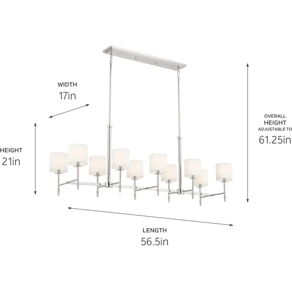 Ali 10 Light 17 Inch Polished Nickel Chandelier Linear Ceiling Light