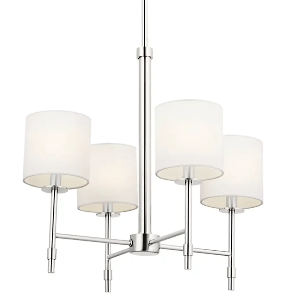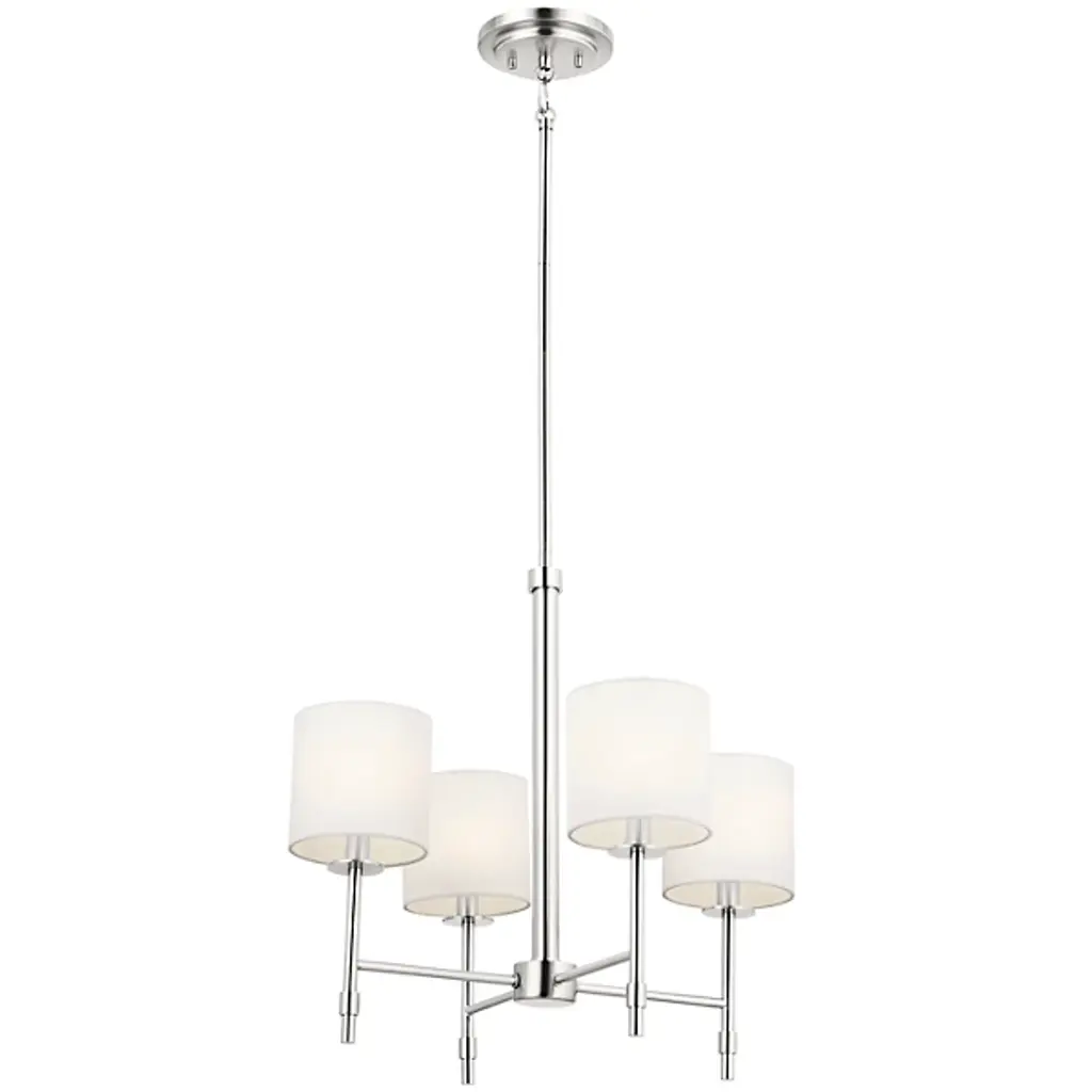 Light up your home with the Ali Mini Chandelier by Kichler. The minimalist design of your chandelier boasts a collection of metallic rods that support individual shades spaced evenly in the air. The chandelier is secured by a downrod attached to a canopy at your ceiling. Each light rests on either side of 2 supporting addendums that perpendicularly intersect at the pendant’s center. This chandelier showcases a transitional style that complements any 21st-century indoor living space.