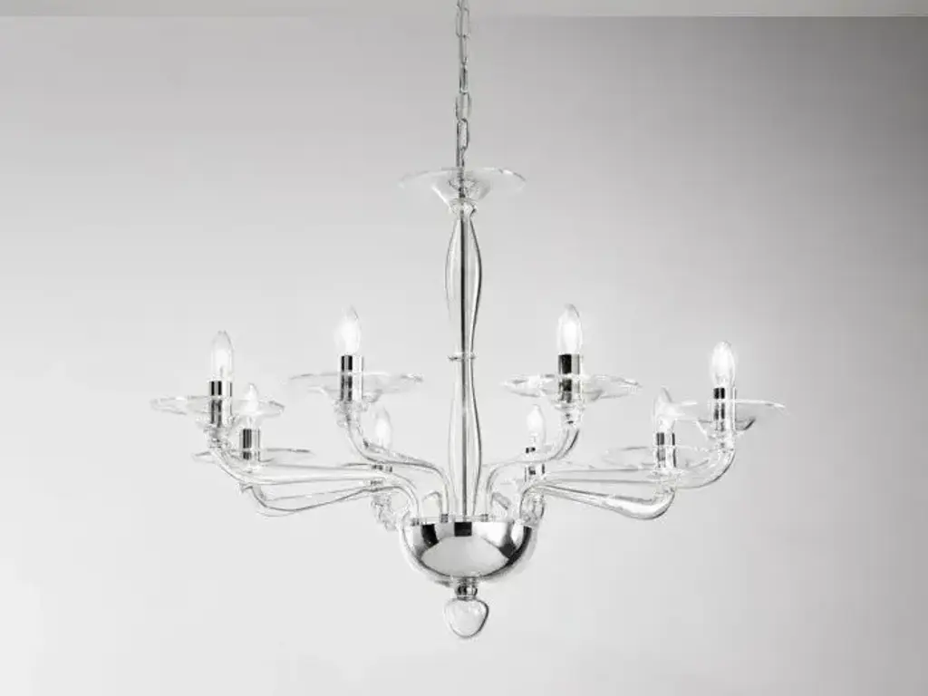 Metal finish: shiny gold - shiny silver.Colours: Alicante clear: glass elements transparent.Alicante white: glass elements white.Alicante fumè: glass elements fumè.Other colours on request.Particular: embellished with Swarovski® crystals and sphere.