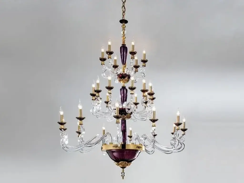 Metal finish: gold satin - silver satin.Colours: transparent. On request transparent with amber - ruby and amethyst plates and cup.Particular: embellished with Swarovski® crystals and sphere.On request LUX version with Crystal or Swarovski® crystals pendants under the arms.