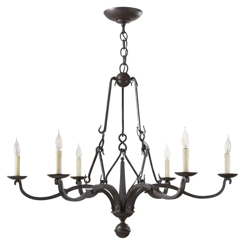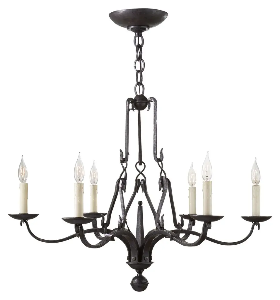 This chandelier is sure to spark conversation with its gothic-inspired silhouette, sinuous arms, and classic candlestick lights. Hardwired.