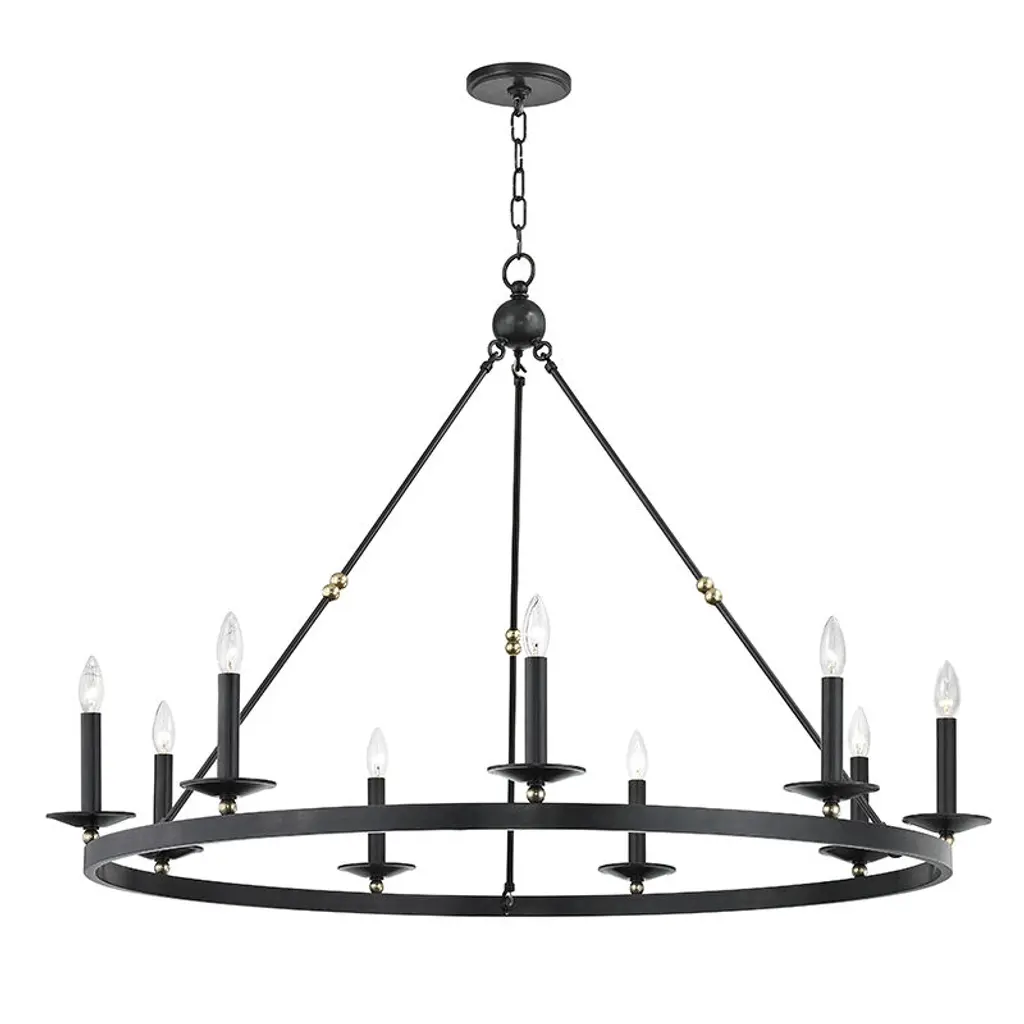 Streamlining a wagon-wheel chandelier with hook-and-hoop rods, Allendale breathes new life into a classic. Available in one-to-three-tier and rectangle versions, its sphere details and vastly different finishes refine the rustic.