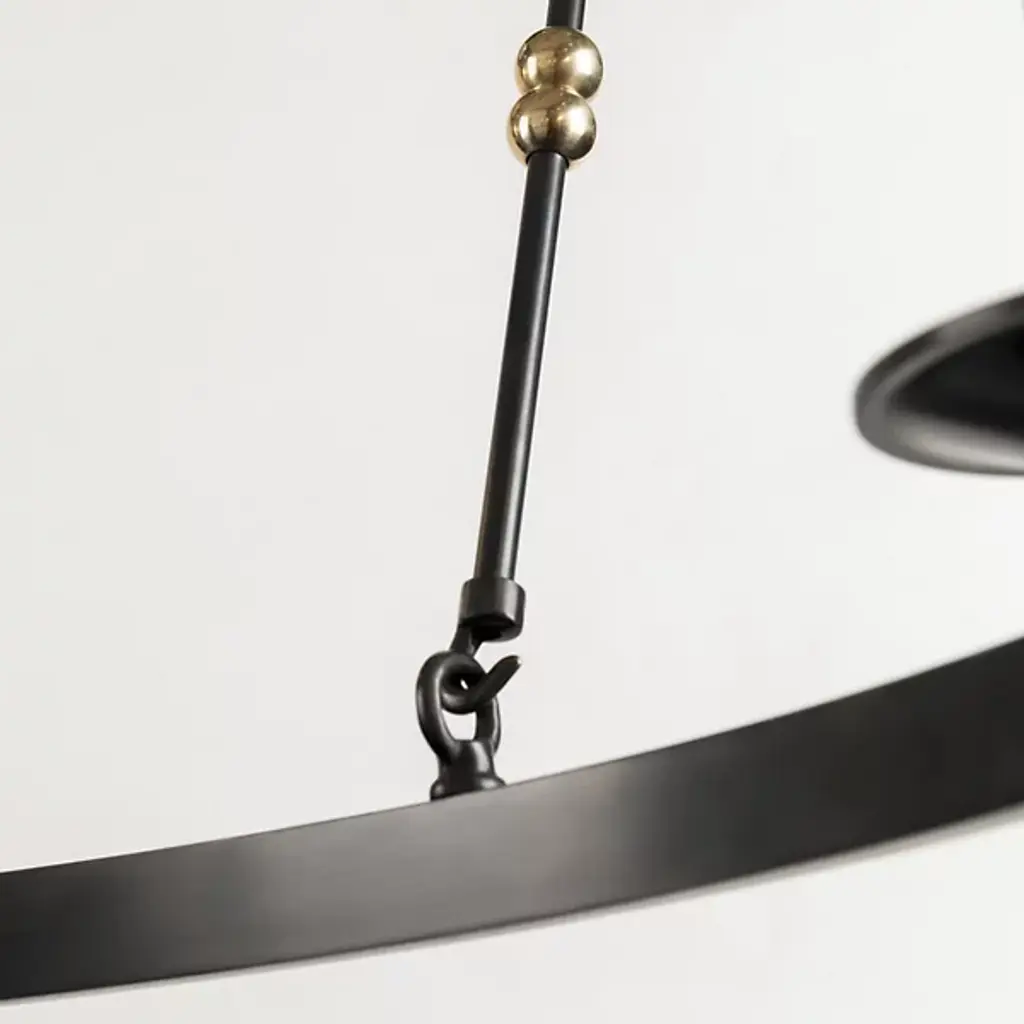 The Hudson Valley Lighting Allendale Chandelier has a classic design that complements any space. It features a simple hoop frame with individual candelabra lights. Lofted by a chain and central sphere finial, the use of spheres echoes along the trio of hanging rods and beneath each candelabra bobeche. A welcoming centerpiece to a modern farmhouse dining room, this fixture makes a statement in a lofty foyer or living room.