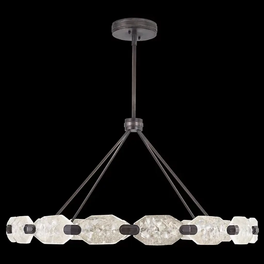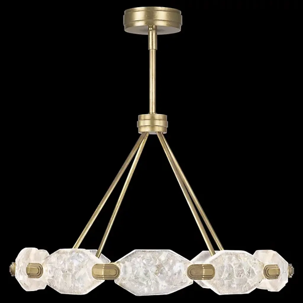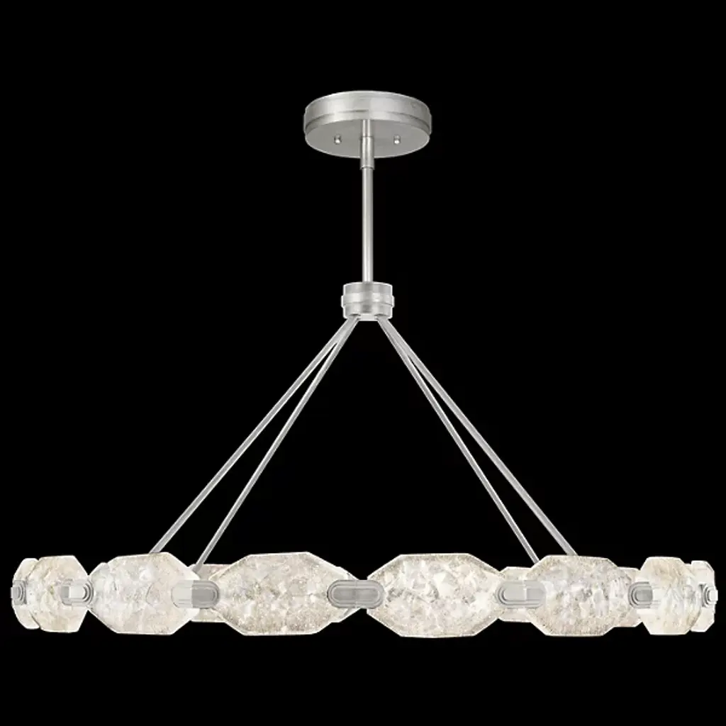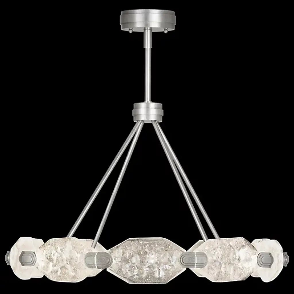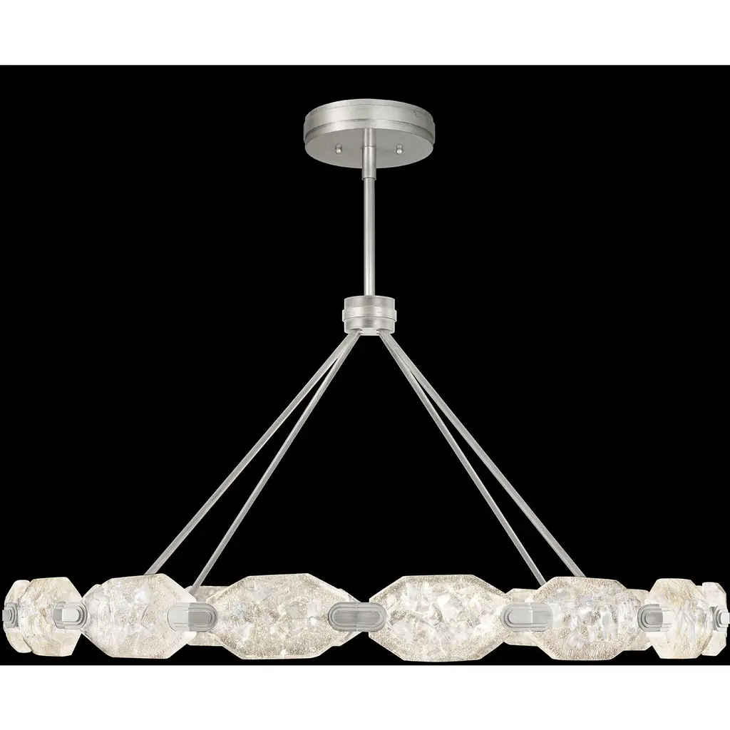 Crown your grand spaces with the sparkling glass shapes of the Allison Paladino LED Chandelier from Fine Art Handcrafted Lighting. It’s a modern piece sparking an elevated tone in every room it graces. A slender metal suspension gives the piece a floating, halo-like quality. Made in a high-temperature vacuum chamber using layers of dichroic glass no bigger than a strand of hair, sculpted glass gems circle in an elegant ring with astonishing detail at every angle. Ornamental metal accents separate the gems in a charming concentric shape. LEDs beam through the crystals, filling them up with brilliant highlights and colorful details. The LED light makes its way over your room as a clean, uplifting glow.