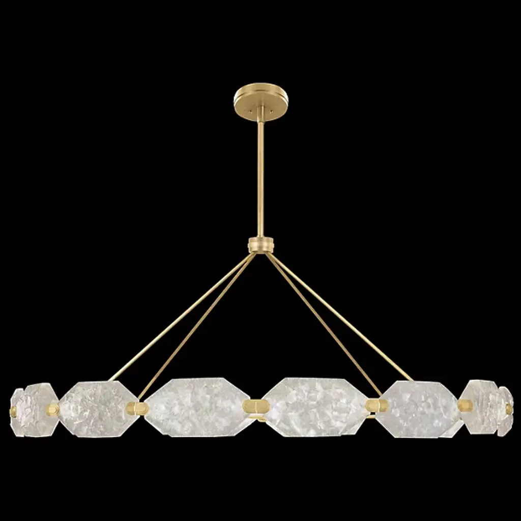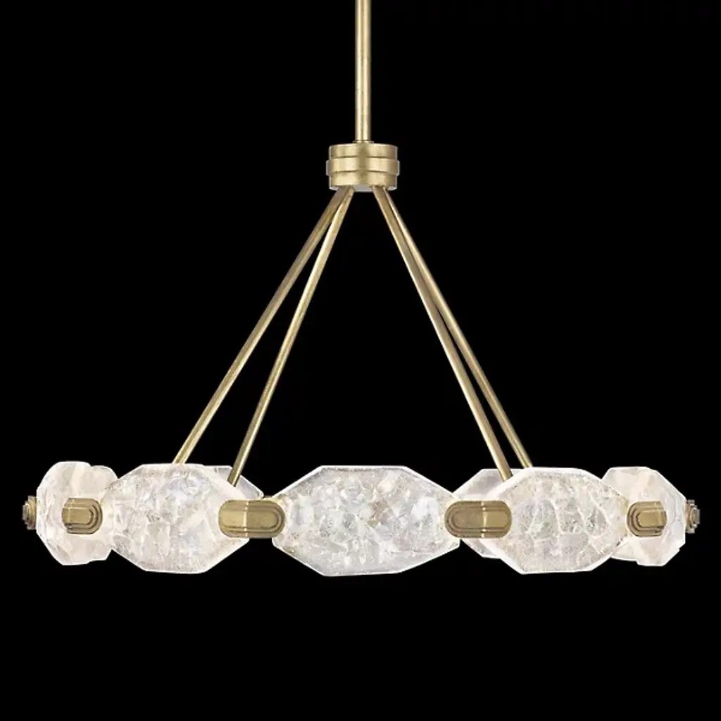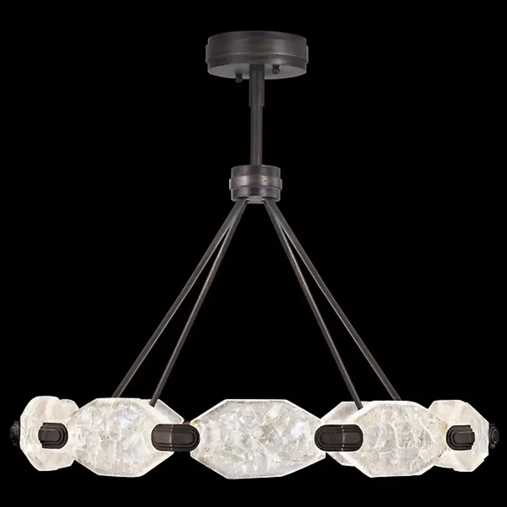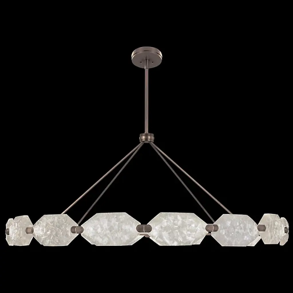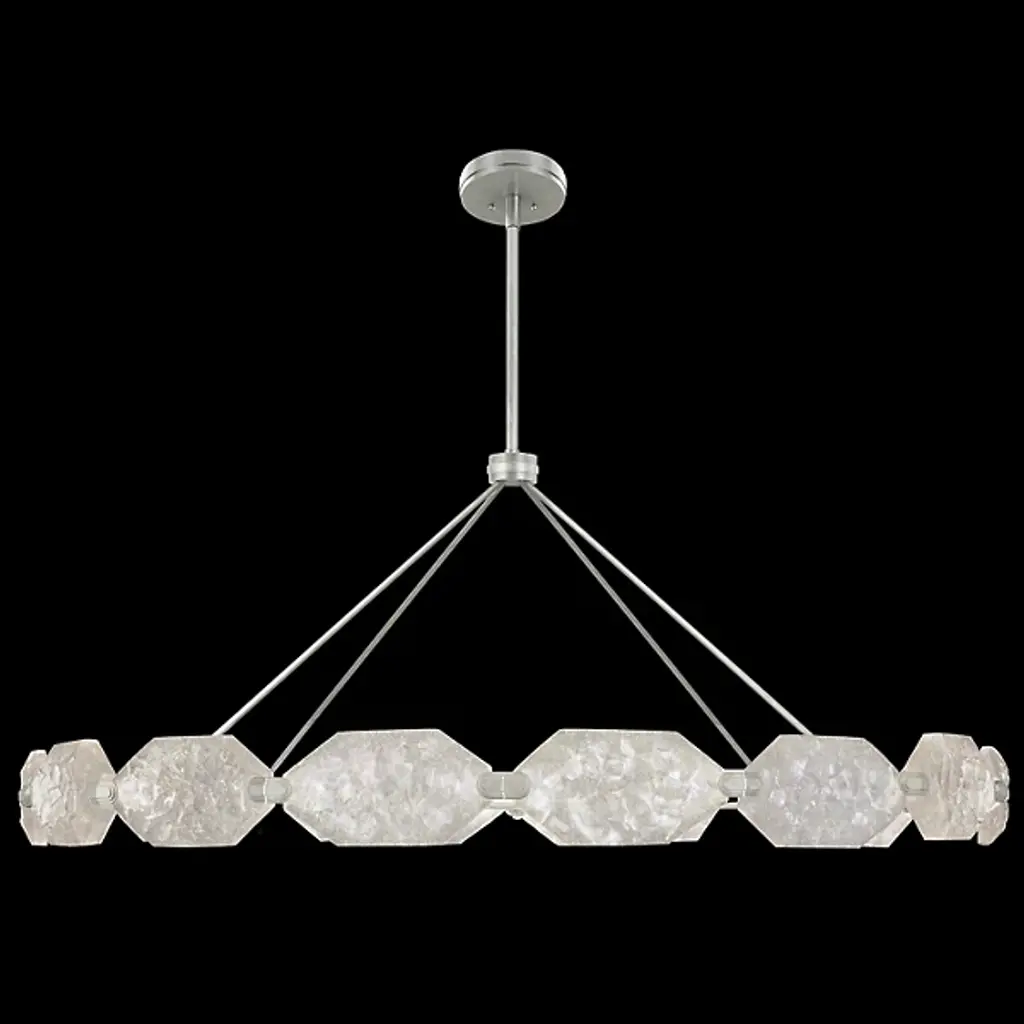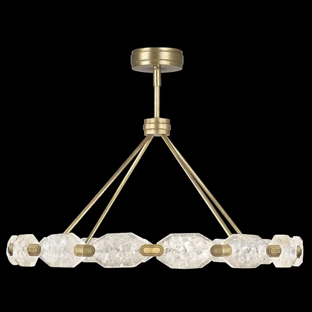 Crown your grand spaces with the sparkling glass shapes of the Allison Paladino LED Chandelier from Fine Art Handcrafted Lighting. It’s a modern piece sparking an elevated tone in every room it graces. A slender metal suspension gives the piece a floating, halo-like quality. Made in a high-temperature vacuum chamber using layers of dichroic glass no bigger than a strand of hair, sculpted glass gems circle in an elegant ring with astonishing detail at every angle. Ornamental metal accents separate the gems in a charming concentric shape. LEDs beam through the crystals, filling them up with brilliant highlights and colorful details. The LED light makes its way over your room as a clean, uplifting glow.