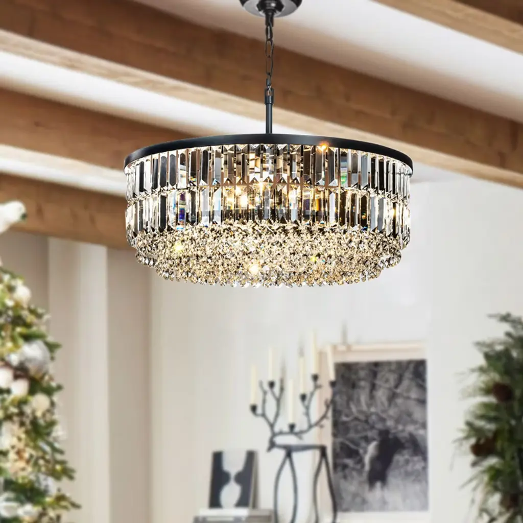 Aloadecor 5 Lights 24" Traditional Matte Black Chandelier With Clear Crystal Accents