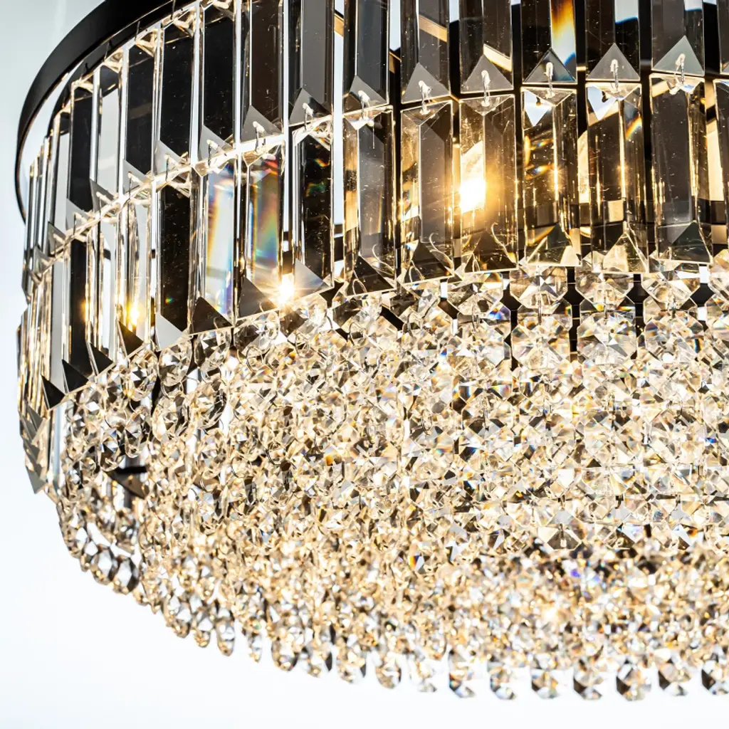 This collection is a prestigious alluring crystal chandelier that enraptures its audience with the exceptional dazzling quality of each piece of clear crystal. The striking strands of crystal hang either side of the E12 lampholders and are joined beneath them with additional octagon crystal pieces, to conceal the lamps used and heighten the sparkle demonstrated when illuminated.