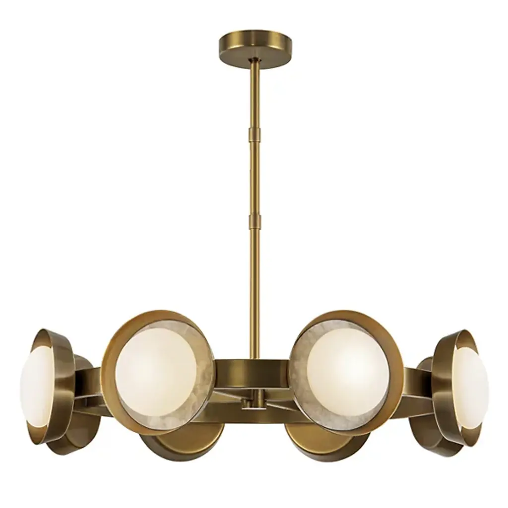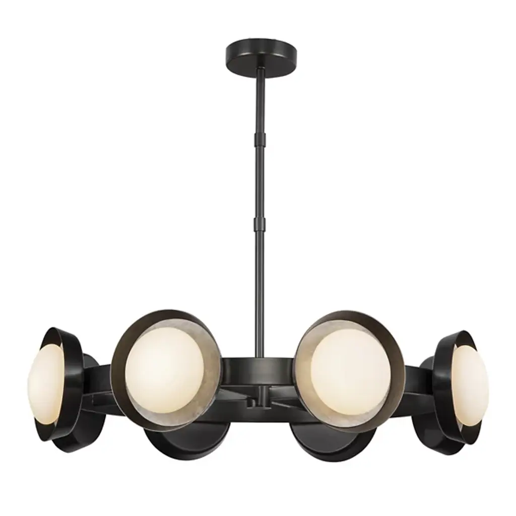 The Alonso LED Chandelier from Alora Lighting masterfully blends soft and robust forms through its captivating combination of materials. Employing alabaster in innovative ways, both as decorative backplate elements and intricately carved shades, Alonso strikes a balance between tradition and modernity. The substantial forged metal frame provides the perfect backdrop for showcasing the exquisite alabaster details. This collection seamlessly marries classic and contemporary design elements, creating a striking visual statement in any space.