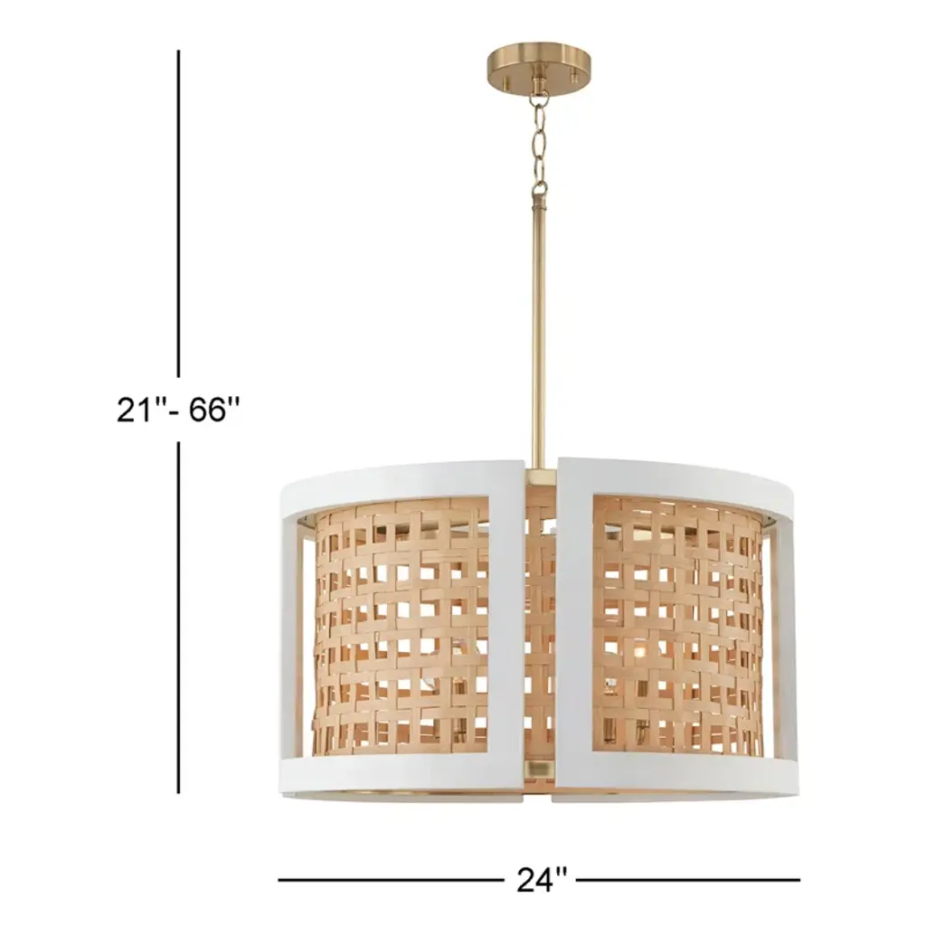 Alonzo 24" W X 14" H 4-Light Drum Chandelier In Chalk Wash Made With Handcrafted Mango Wood And Water Hyacinth