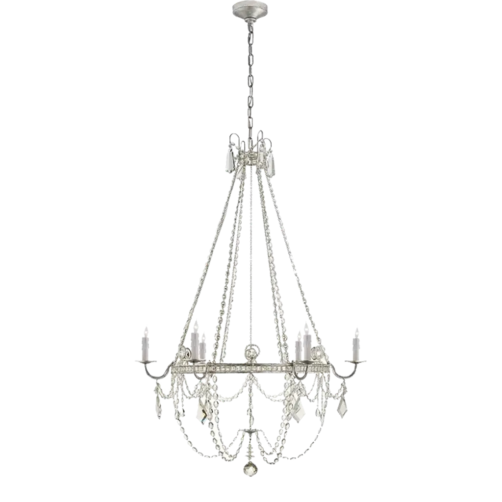 Introducing the Alonzo Large Chandelier, a masterpiece by Julie Neill, part of the Visual Comfort Signature Collection. This chandelier exudes elegance and sophistication, seamlessly blending timeless design with modern flair. Crafted with meticulous attention to detail, its striking silhouette and exquisite materials make it a captivating focal point in any room. Whether gracing a grand dining area or adding a touch of luxury to a living space, the Alonzo Large Chandelier promises to elevate your interior with its radiant charm and impeccable craftsmanship.
