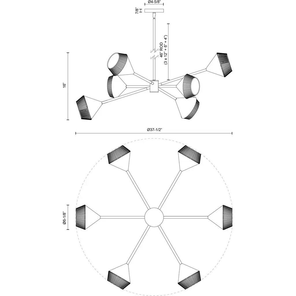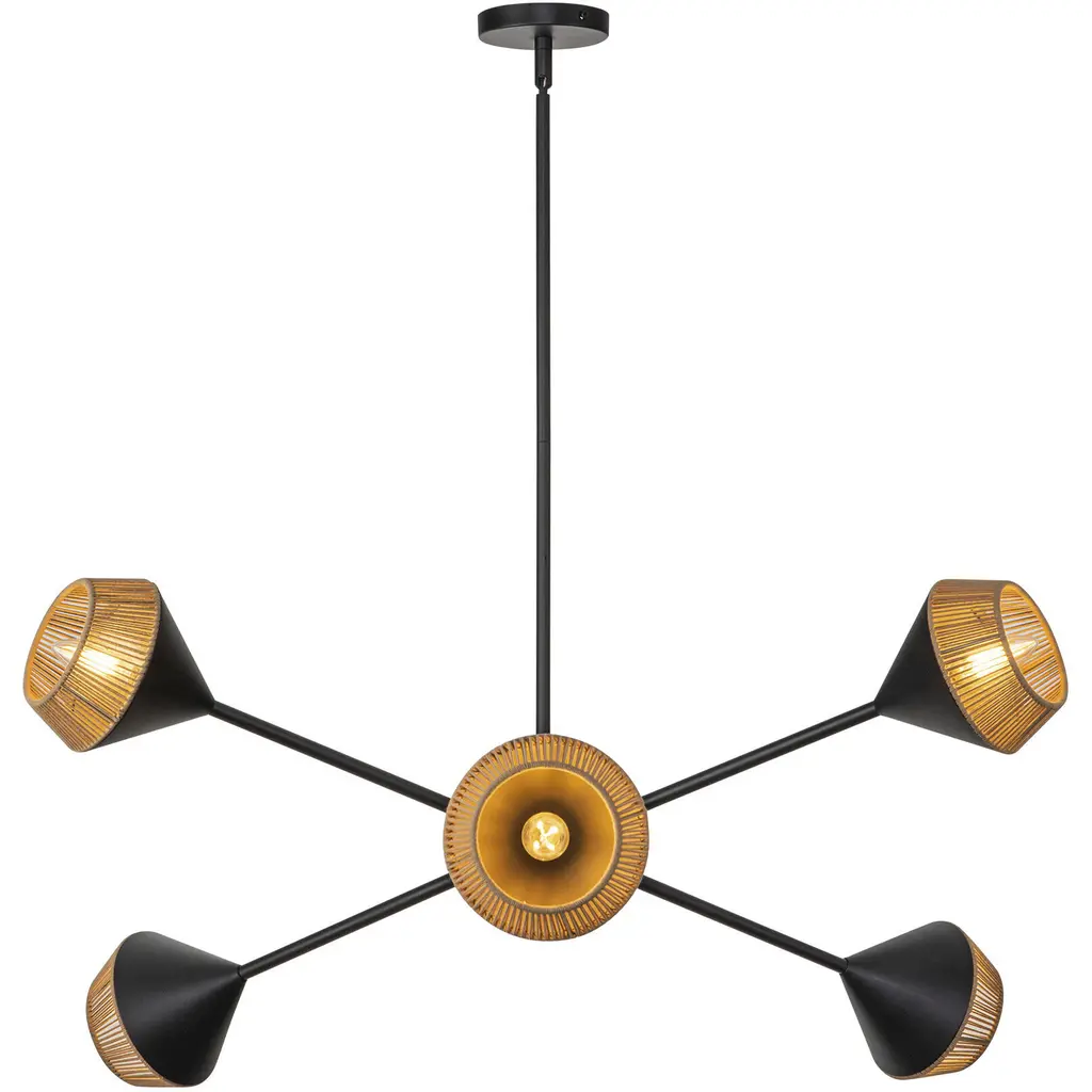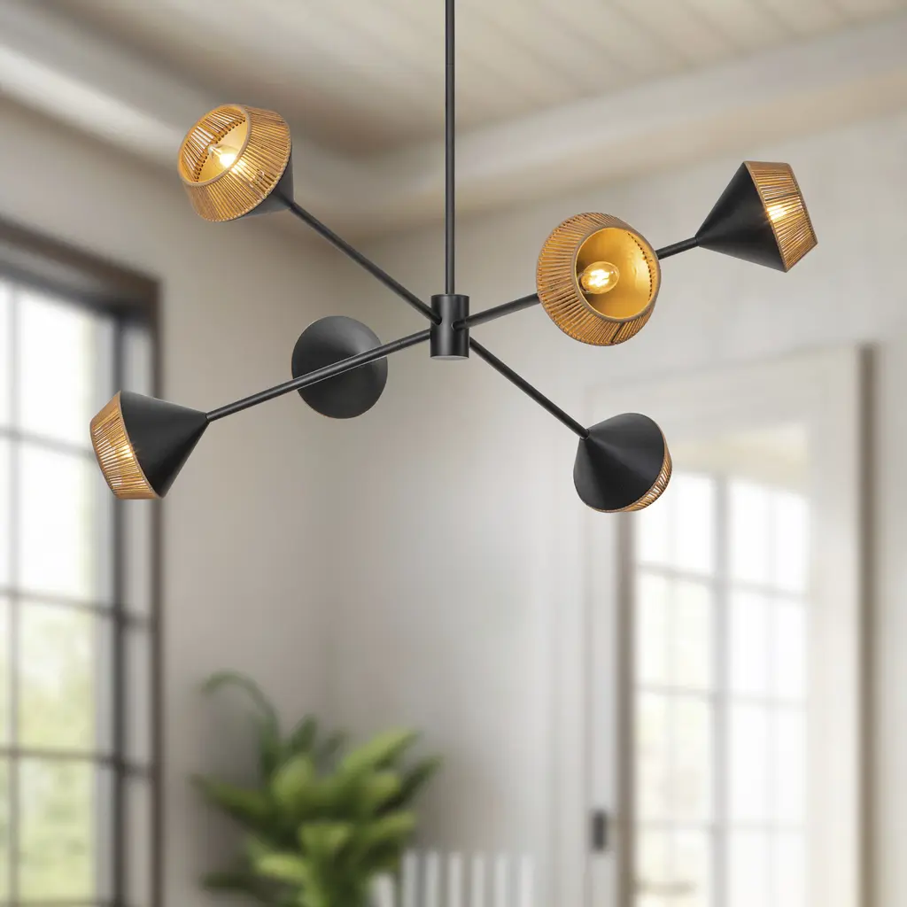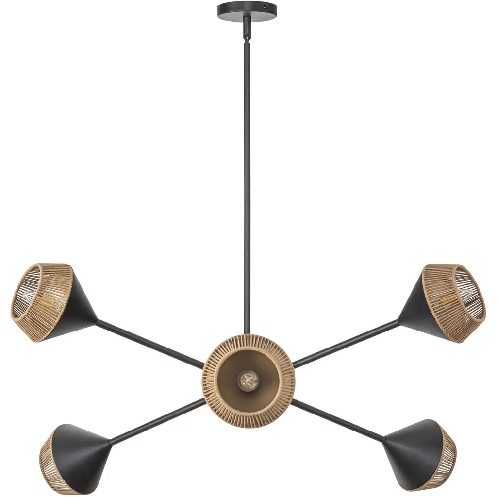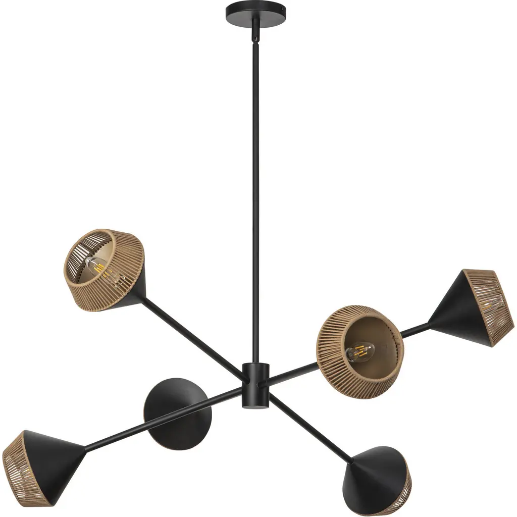 Alora Mood Daphne 6 Light 37.5 Inch Matte Black And Brown Cotton Rope Chandelier Ceiling Light