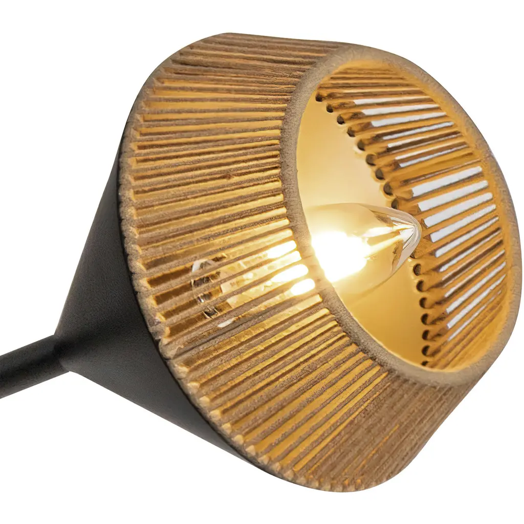 The playful geometric shapes in the Daphne collection offer a Japanese-inspired twist on mid-century design, presenting a symphony of angles, lines, and dimension. Each piece is crafted with metal bodies and natural rope accents not only illuminate your outdoor or indoor space, but also to serve as a striking centerpiece.