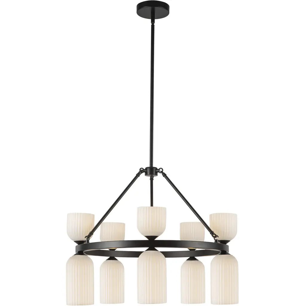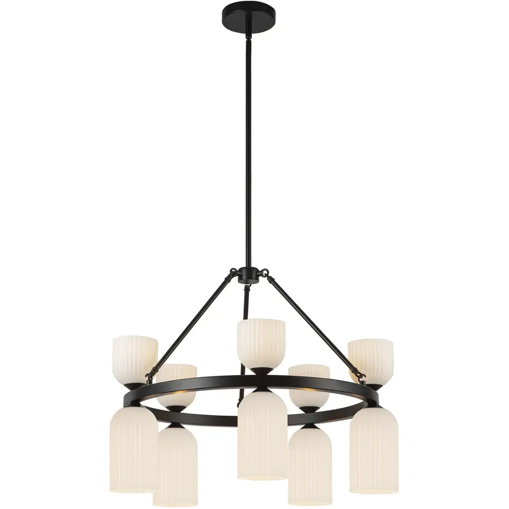 Alora Mood Nelly 10 Light 25.88 Inch Matte Black Chandelier Ceiling Light In Glossy Opal Ribbed Glass Shade