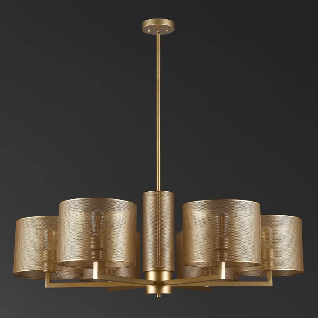 Alora Mood Plisse 8 Light 30 Inch Aged Gold Chandelier Ceiling Light
