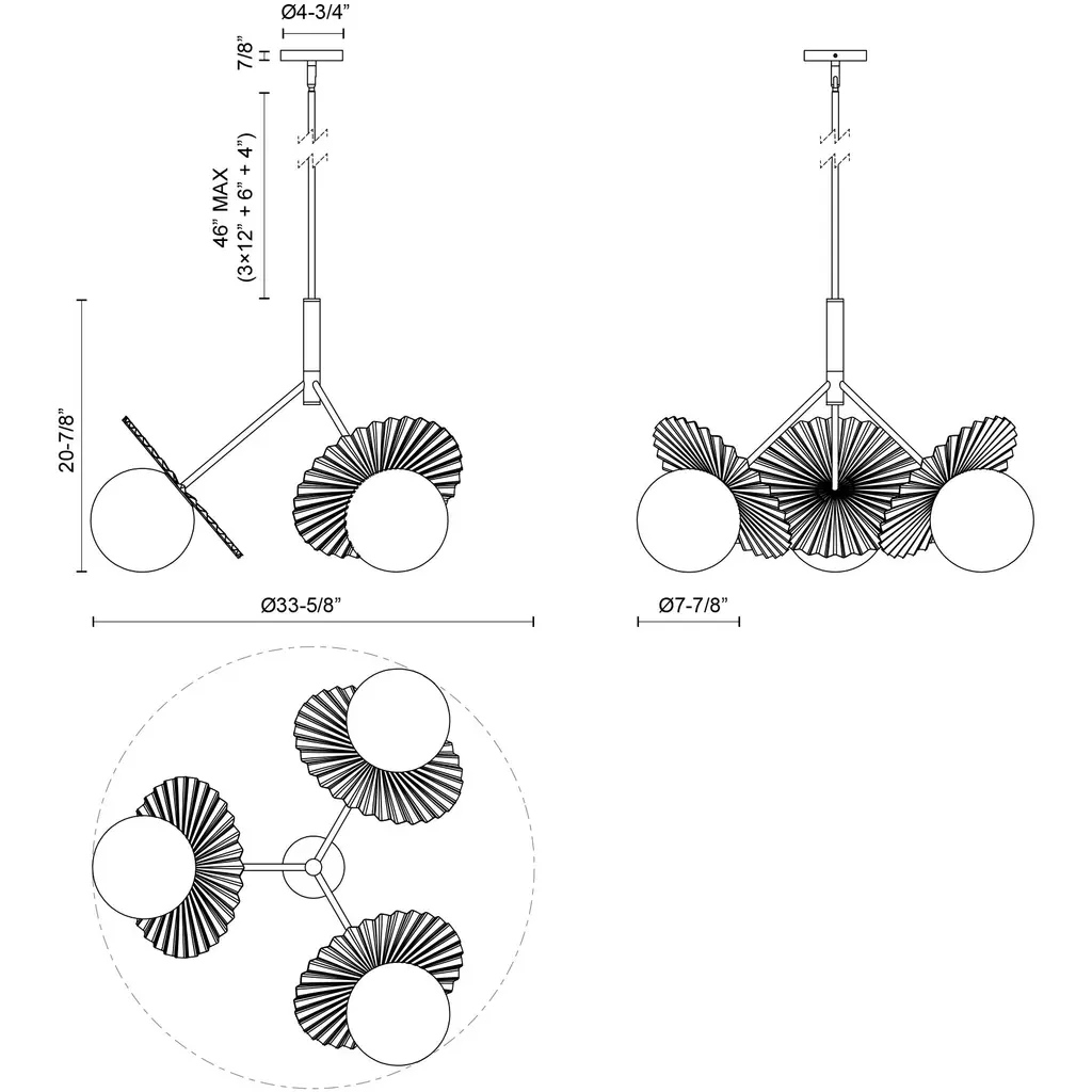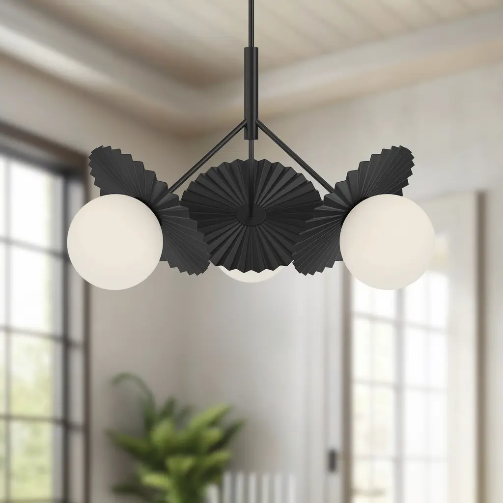 Alora Mood Plume 3 Light 33.63 Inch Matte Black Chandelier Ceiling Light