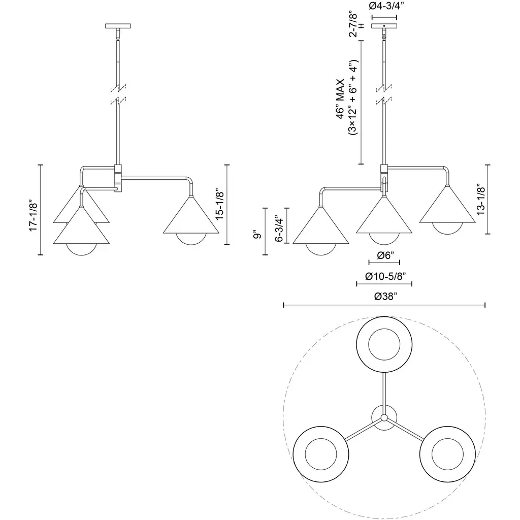 Alora Mood Remy 3 Light 38 Inch Brushed Gold Chandelier Ceiling Light