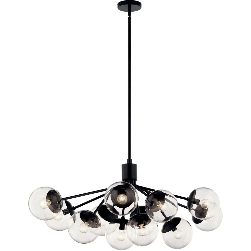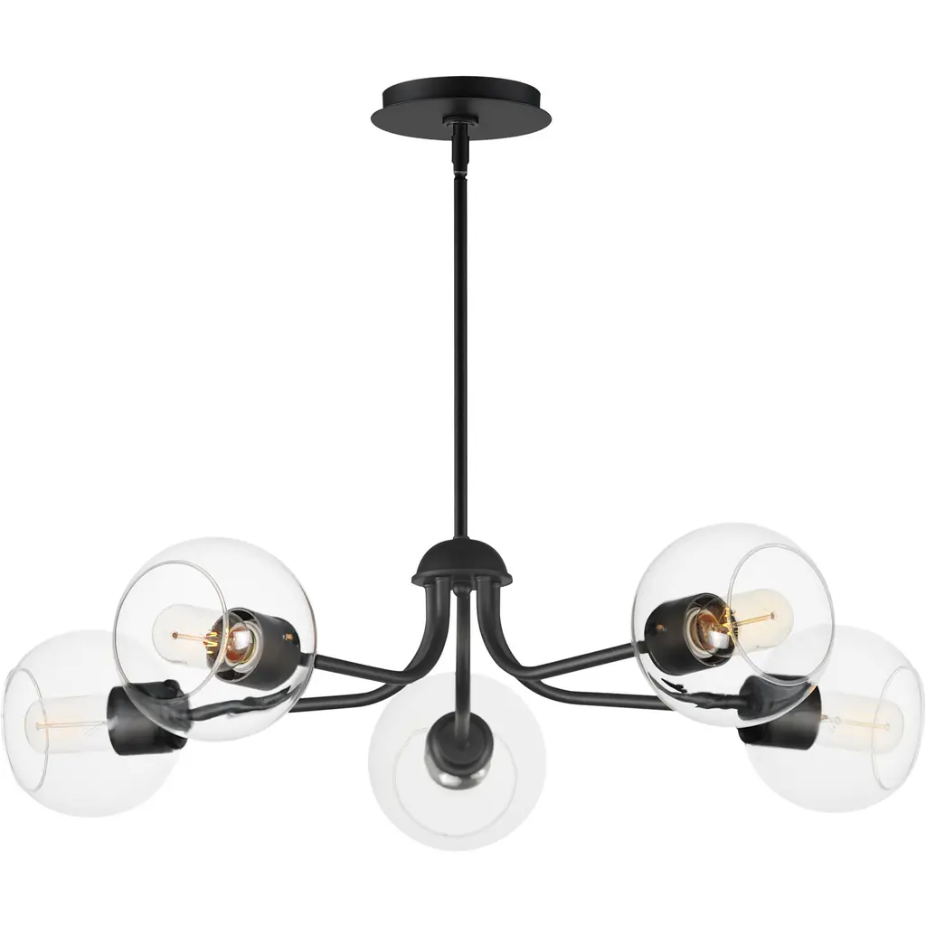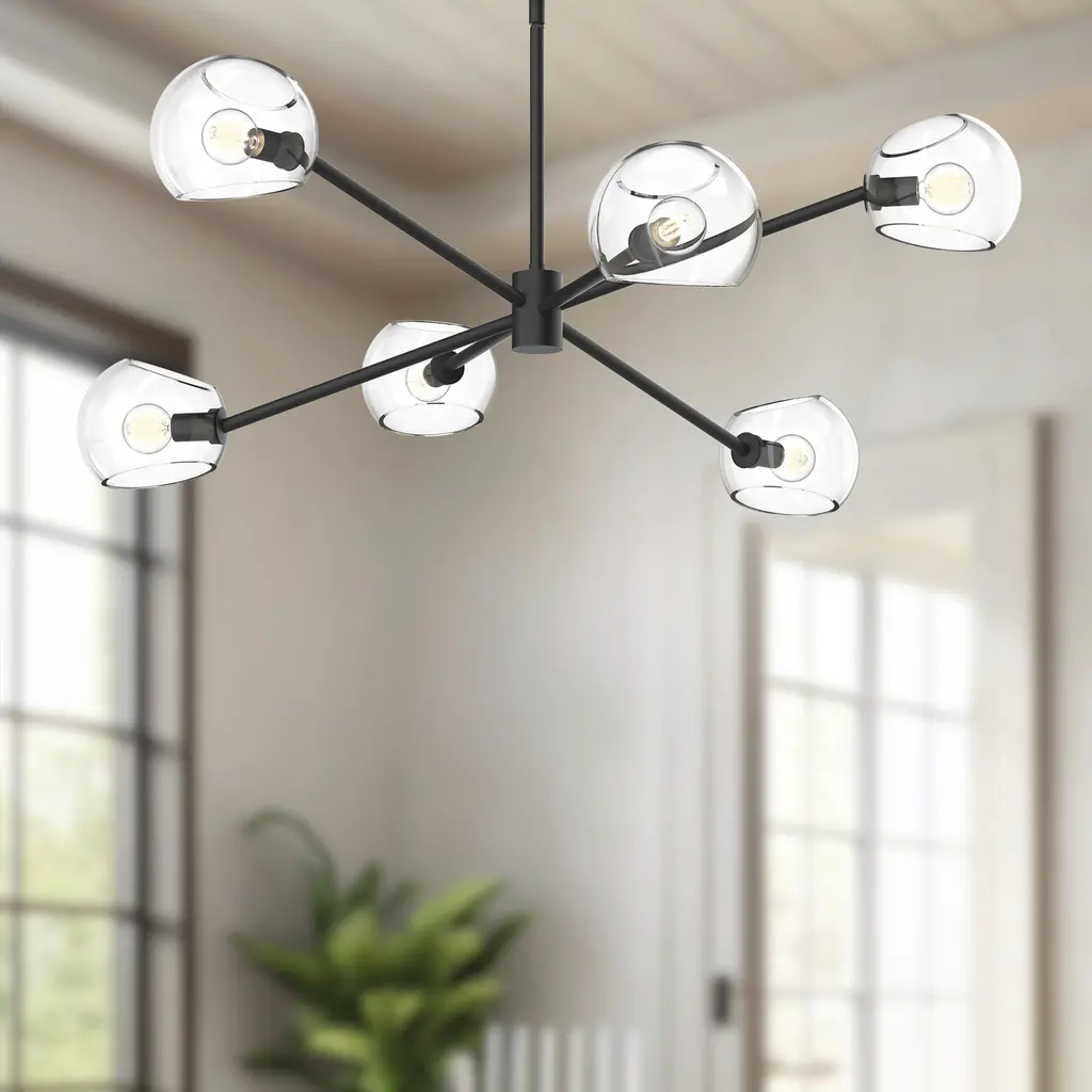 Alora Mood Willow 6 Light 37 Inch Matte Black Chandelier Ceiling Light In Clear Glass