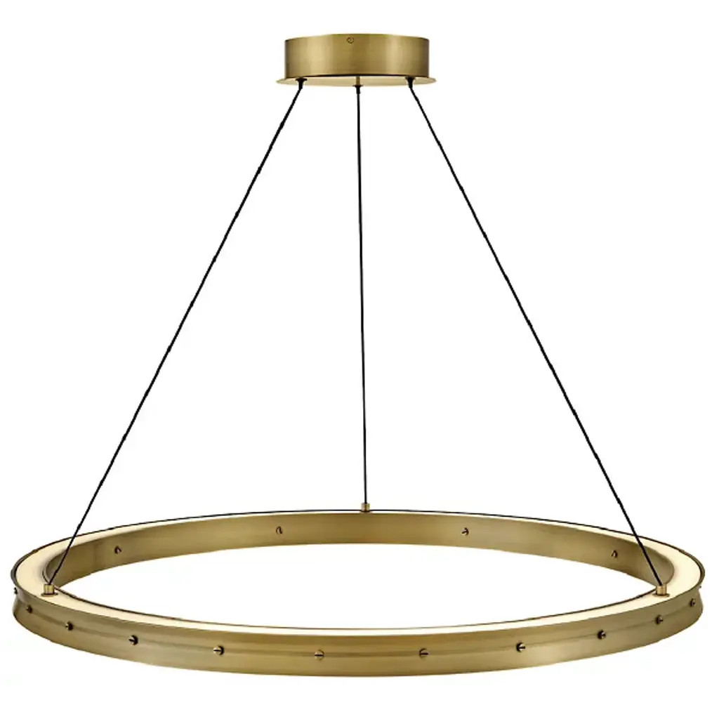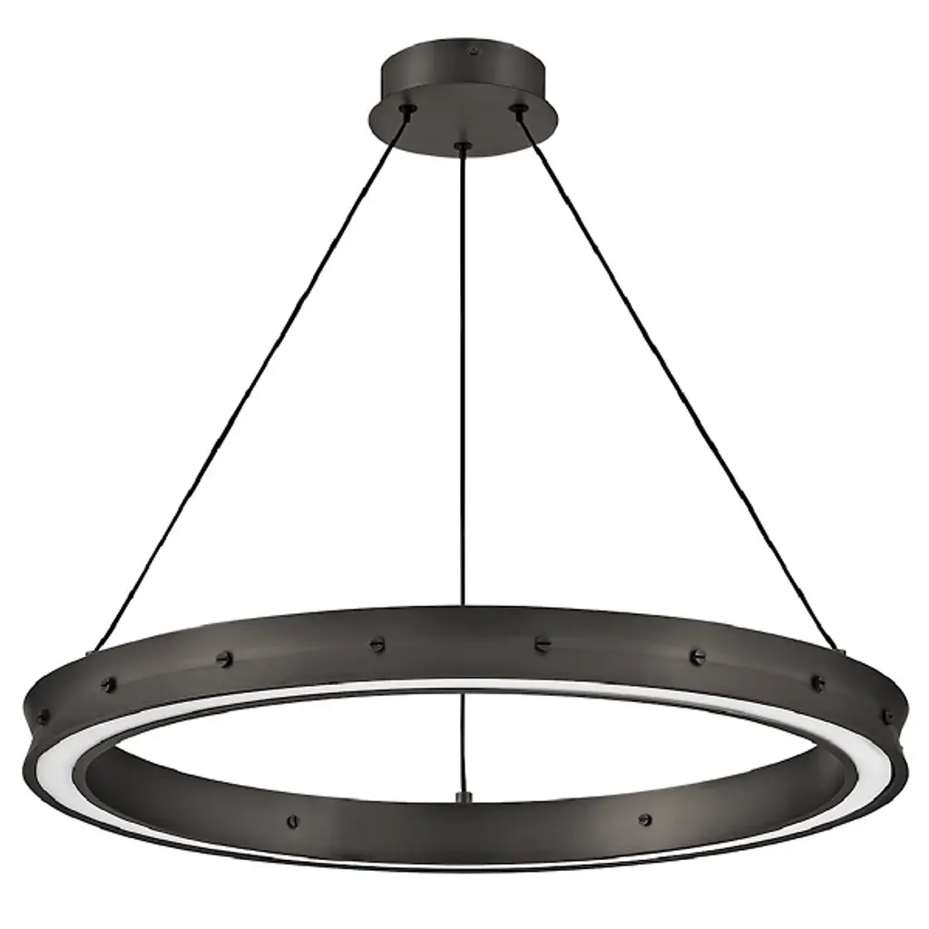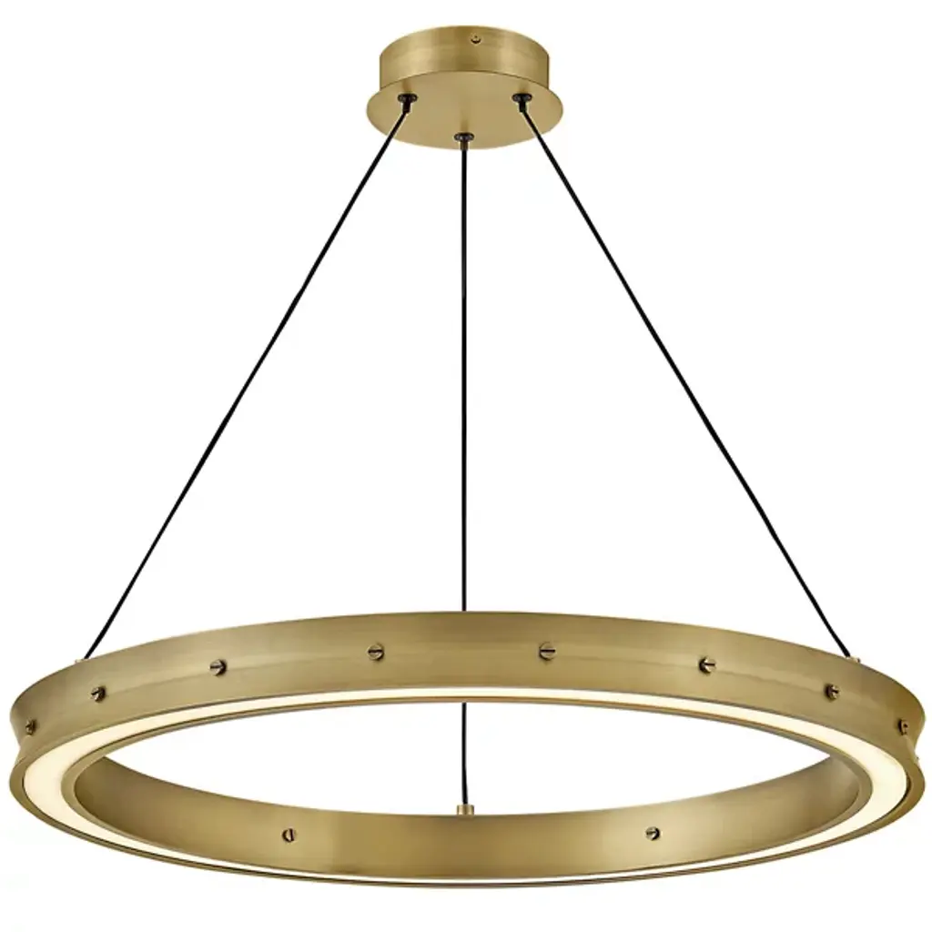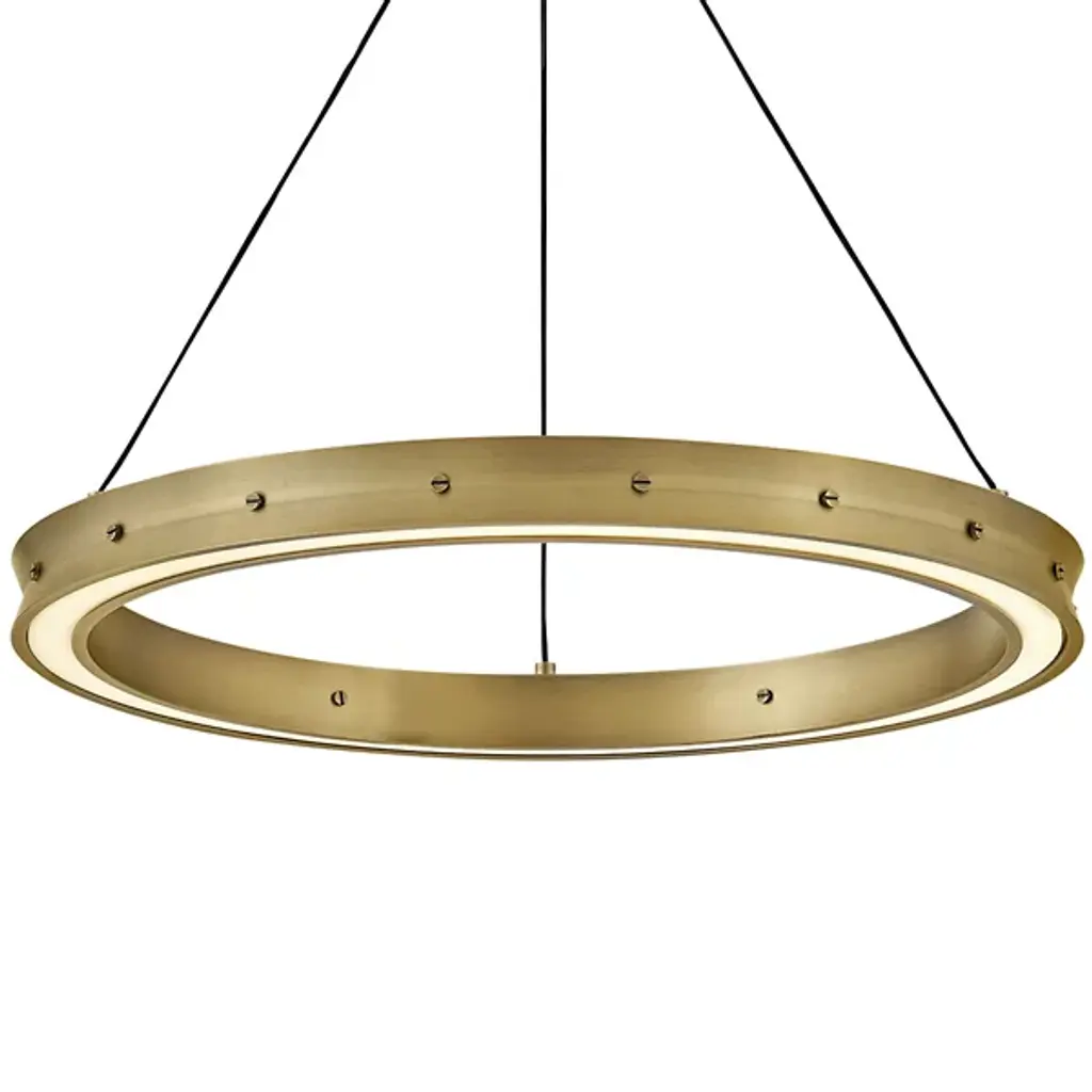 The Althea LED Chandelier from Fredrick Ramond embodies minimalist elegance, adorned with simplicity and accented by decorative screws in a matching Lacquered Brass or Satin Black finish. Its refined design features an etched diffuser, delicately dispersing light from the top and bottom. The result is a warm and inviting illumination that gracefully fills your entire space. Althea stands as a testament to the beauty found in simplicity, creating a sophisticated lighting solution that seamlessly complements any decor style with understated charm.