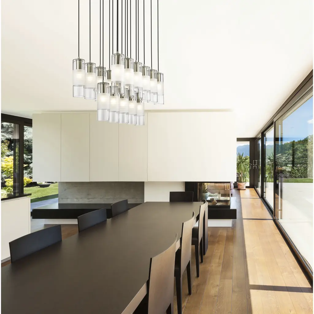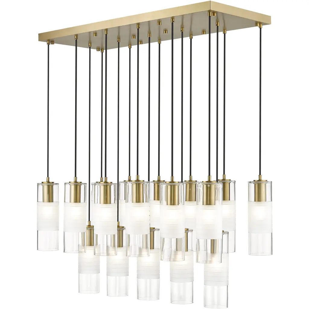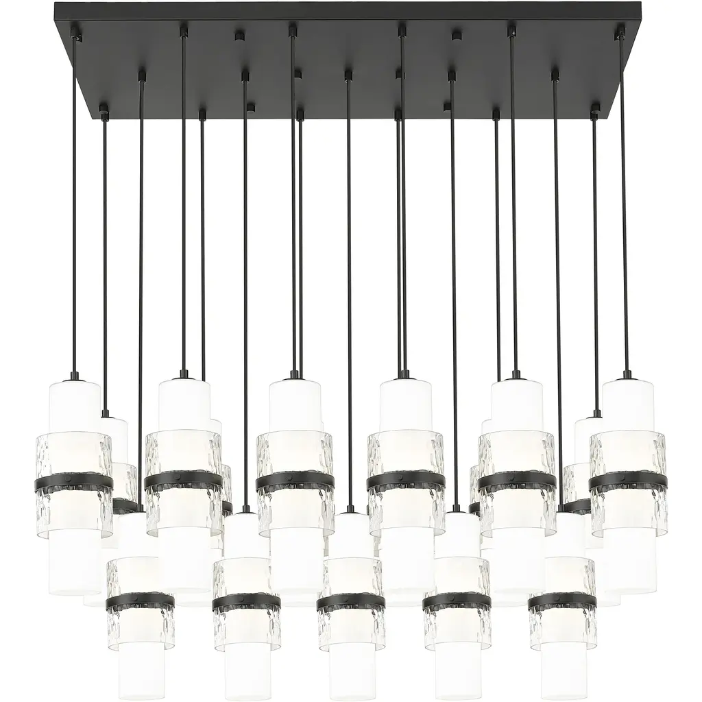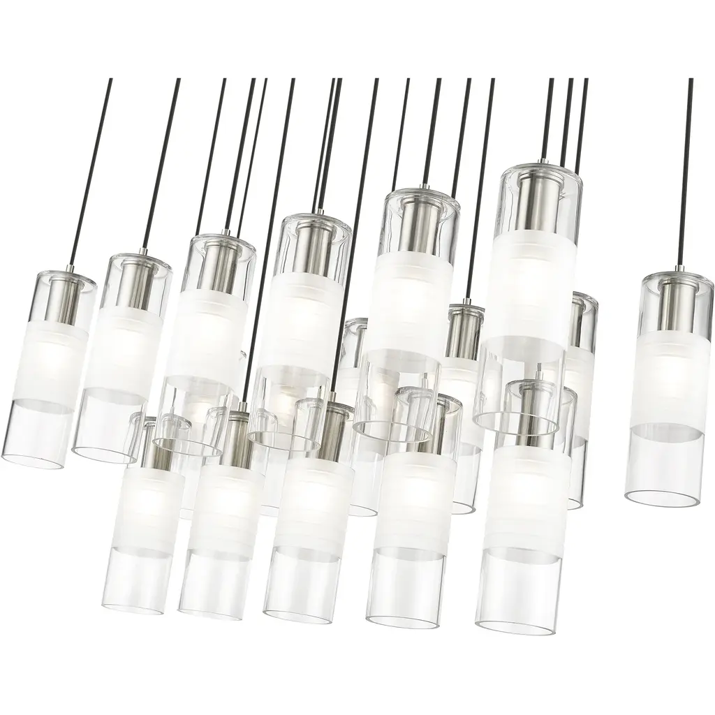 Two tiers create a staggered effect for the individual suspended lights featured in a modern 17-light linear chandelier. From the Alton collection, its deceptive simplicity is enhanced with clear and frosted glass elements and braided clothe cords that effect a fresh, tailored ambiance perfect for sophisticated spaces. Its housings and rectangular canopy receives brushed nickel finish, instilling a sleek, refined sensibility in any space.