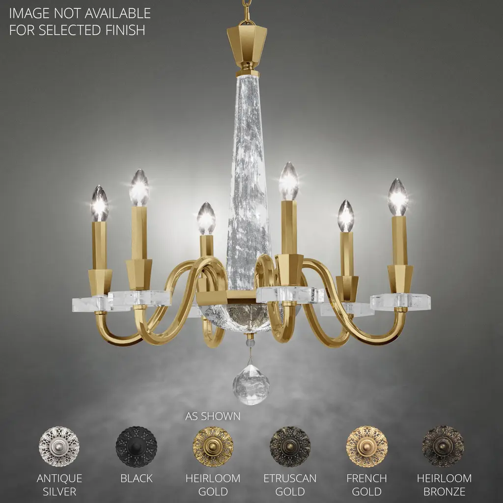 A luxurious symphony of graceful curves with mesmerizing optic haze crystal tapers takes Amadeus center stage in any setting. This stunning chandelier is a harmony of refined creation and classical elegance. Constructed of steel featuring Optic Haze Crystal that is engineered from quartz rock crystal. Illuminates beautifully to entice and radiate with its natural and unique, inherent variations in luster, hue, patterning and texture. Available in 6-Light and 8-Light sizes with a matching wall sconce option, select your configuration accordingly. Chain suspended from a canopy with crystal bobeche using up to 40in of matching chain that can be field adjusted (additional chain sold separately). Fixture includes 10ft of wire for a maximum suspension up to 10ft. Can be installed on a slope ceiling up to a 30 degree slope.